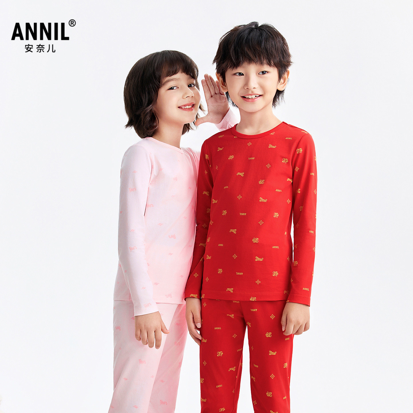安奈儿童装男童女童秋衣秋裤套装2026春新年款打底内衣裤红色弹力