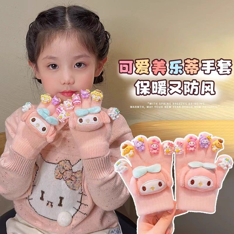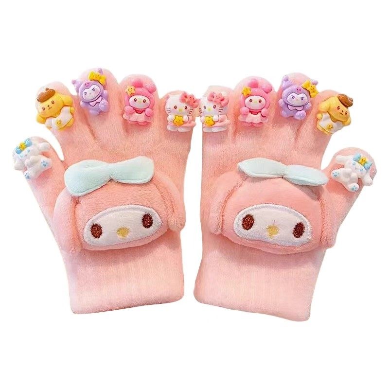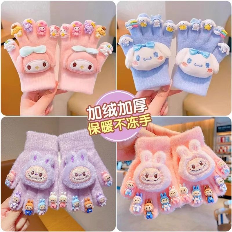 儿童2025卡通手套冬季保暖防冻男女童美甲DIY宝宝加厚五指手套女