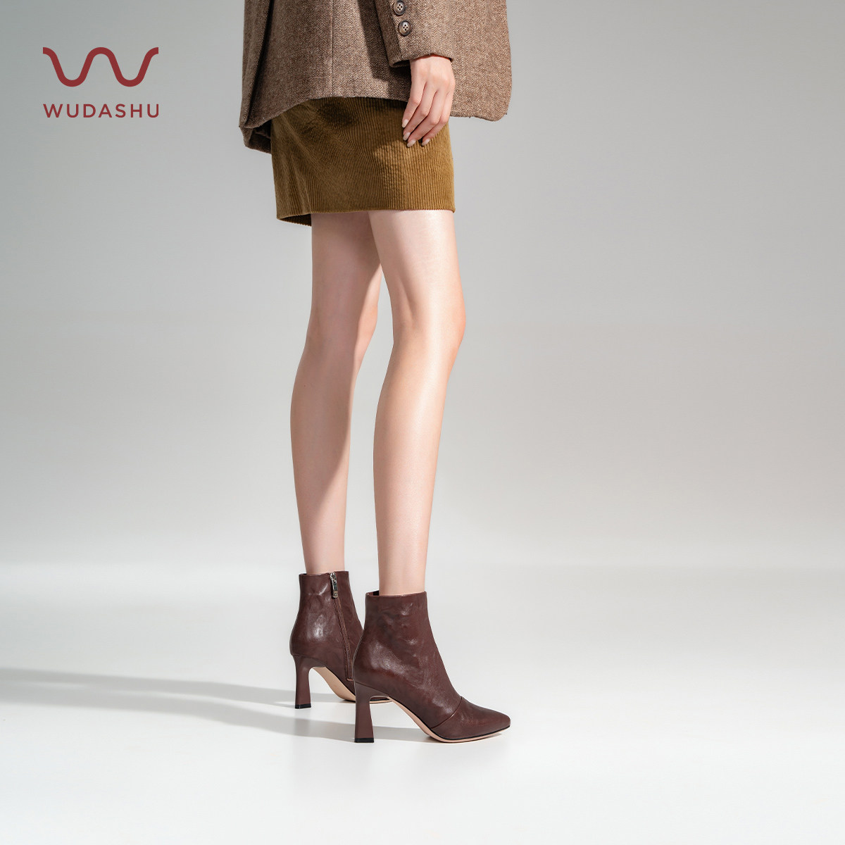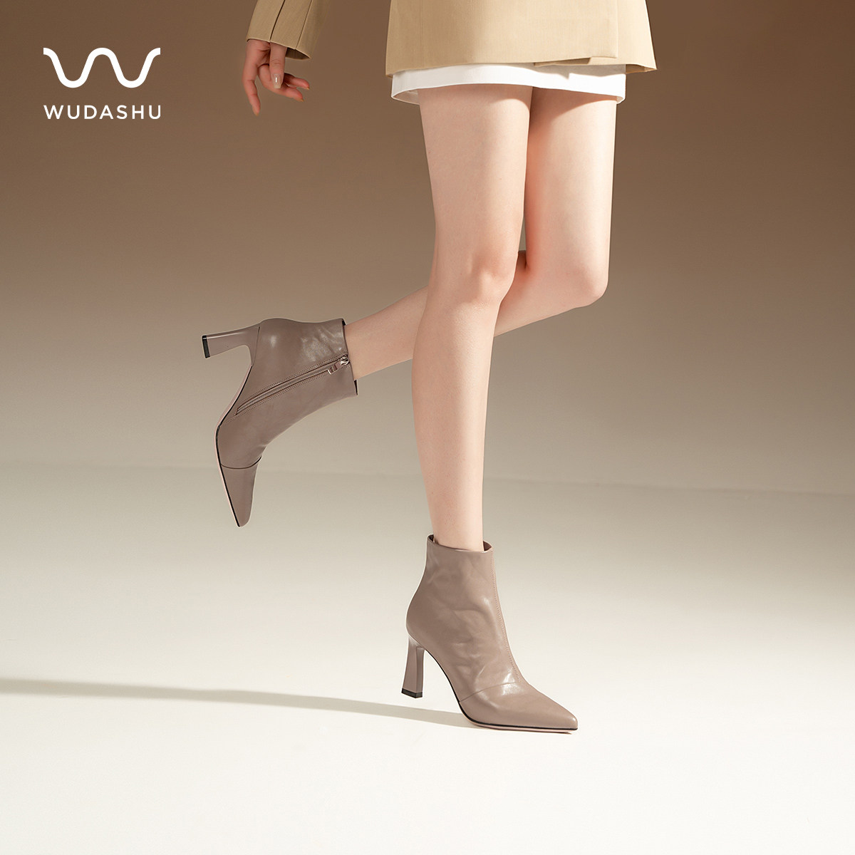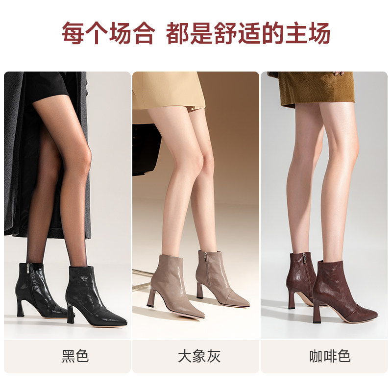 吴大叔红云鞋2025秋冬时尚气质感短靴气垫缓震细跟尖头百搭高跟靴