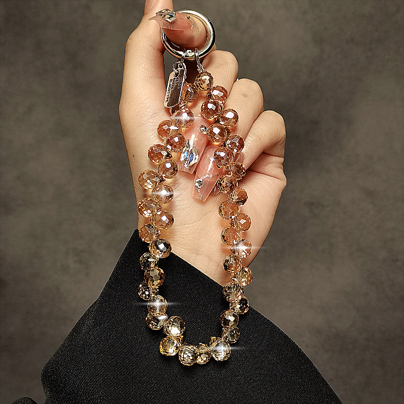奢华高级感水晶珠子手提链手腕短挂绳带夹片壳钥匙扣包包挂件