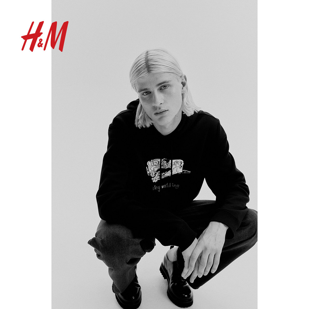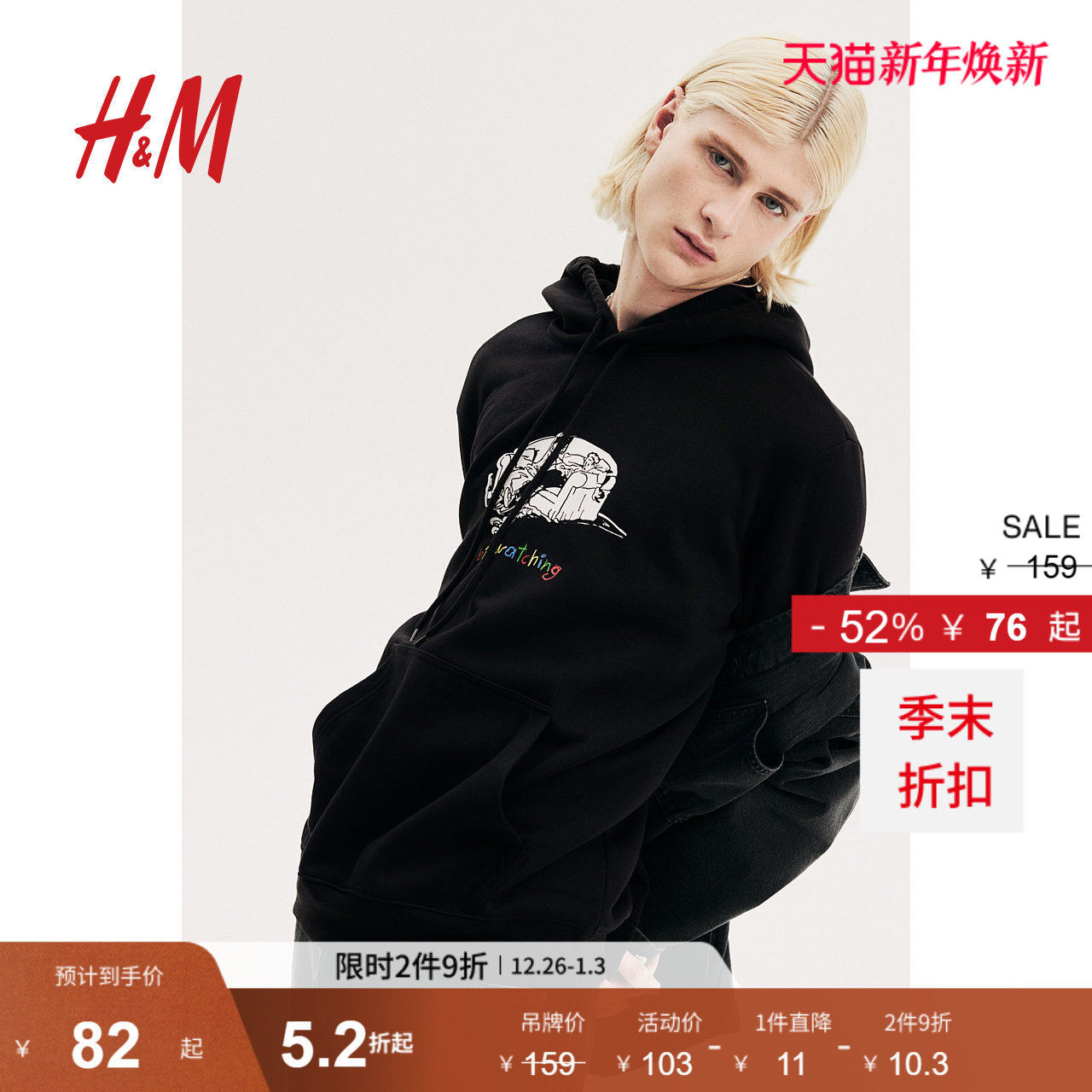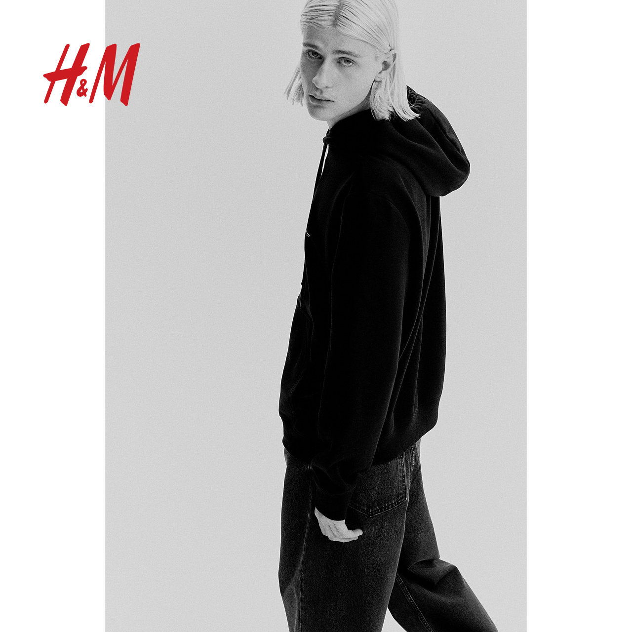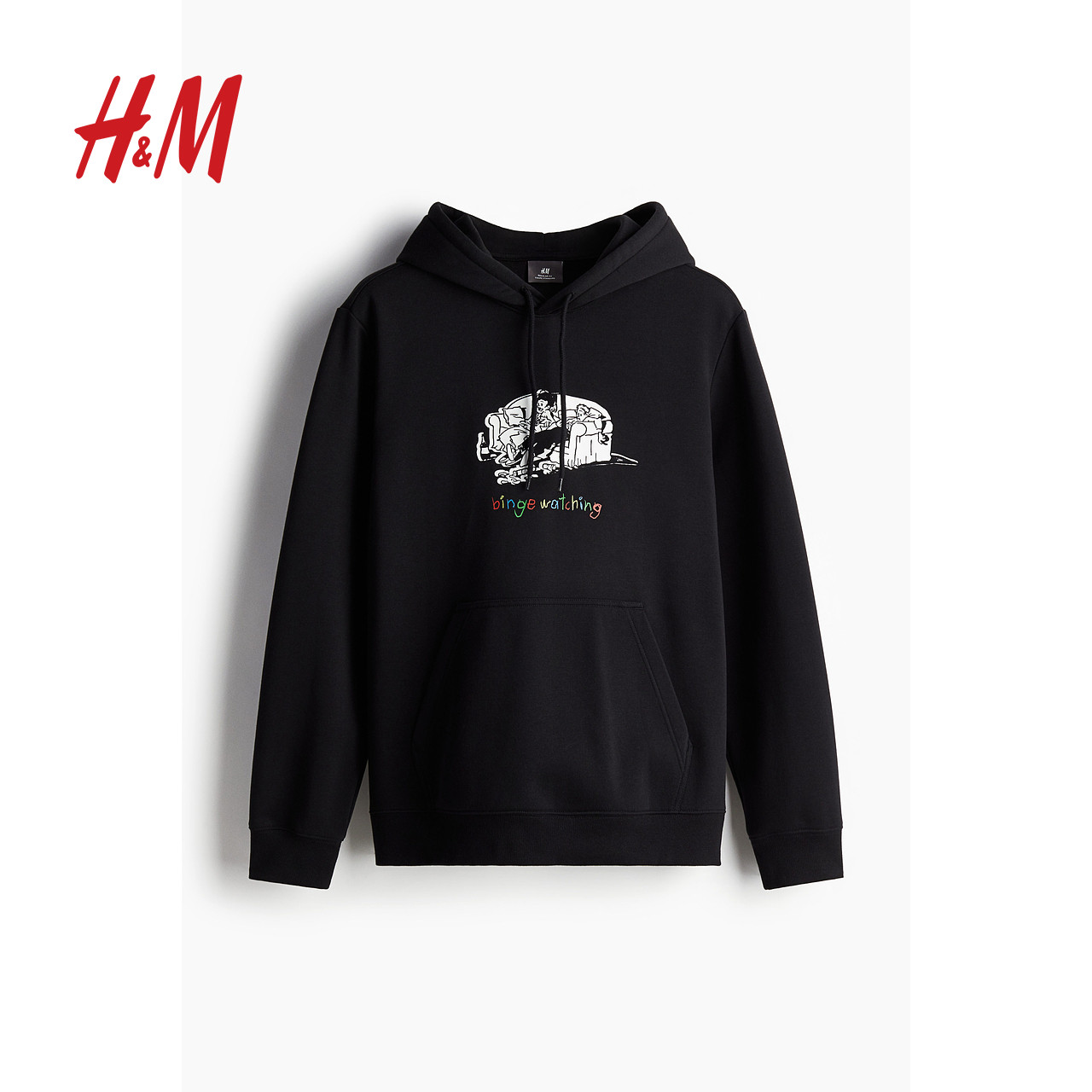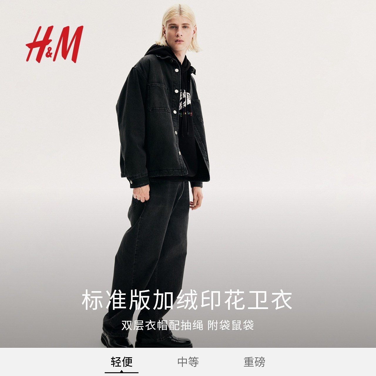 HM男装女装卫衣冬季加绒宽松字母印花时尚情侣装连帽衫1010387