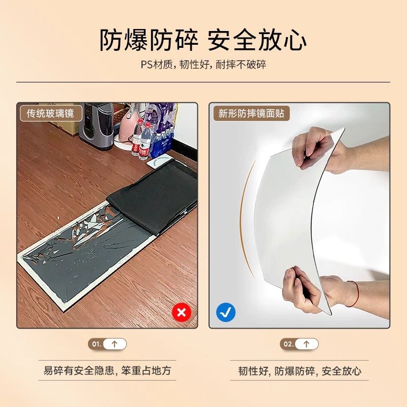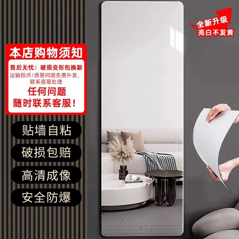 亚克力贴墙自粘软镜子高清家用免打孔贴柜门全身穿衣镜玻璃卧室