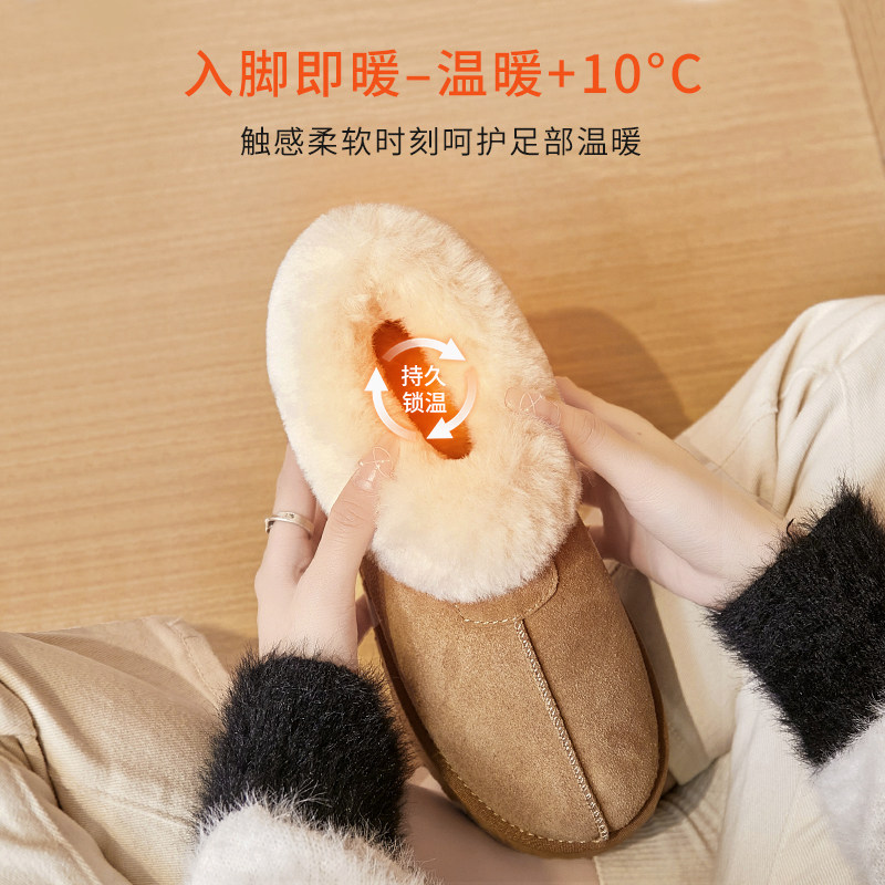 低帮厚底雪地靴女2025新款冬季懒人一脚蹬毛毛棉鞋加绒加厚女鞋子