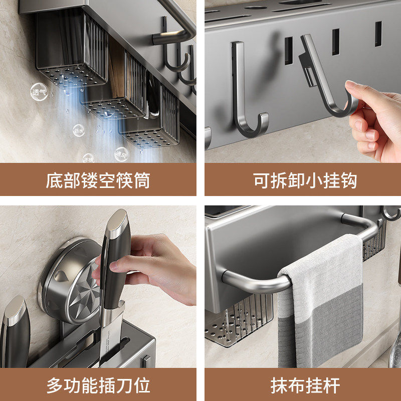 厨房刀架置物架多功能新款台面筷子筒菜板一体壁挂刀具收纳架沥水