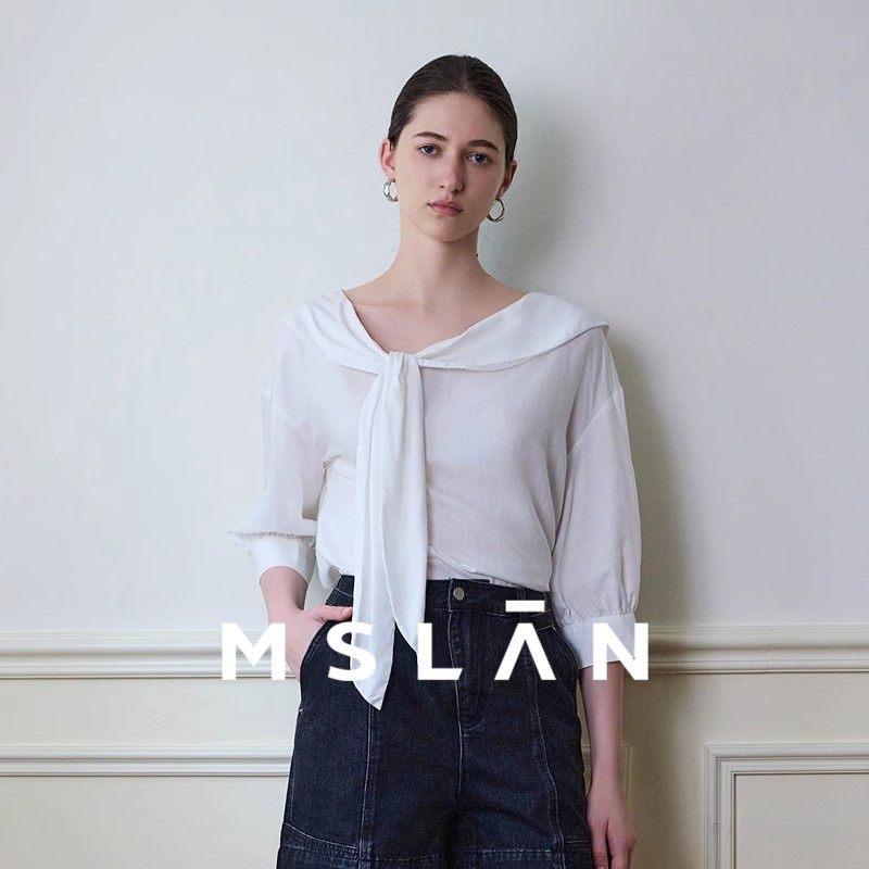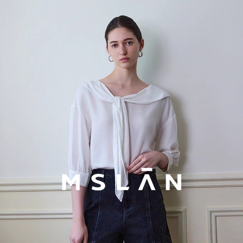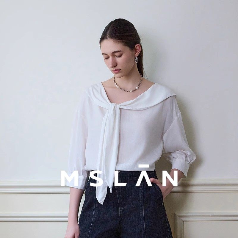 【莱赛尔面料】MSLAN春季白色简约显瘦雪纺水手领衬衫MEBA1522