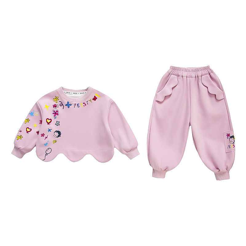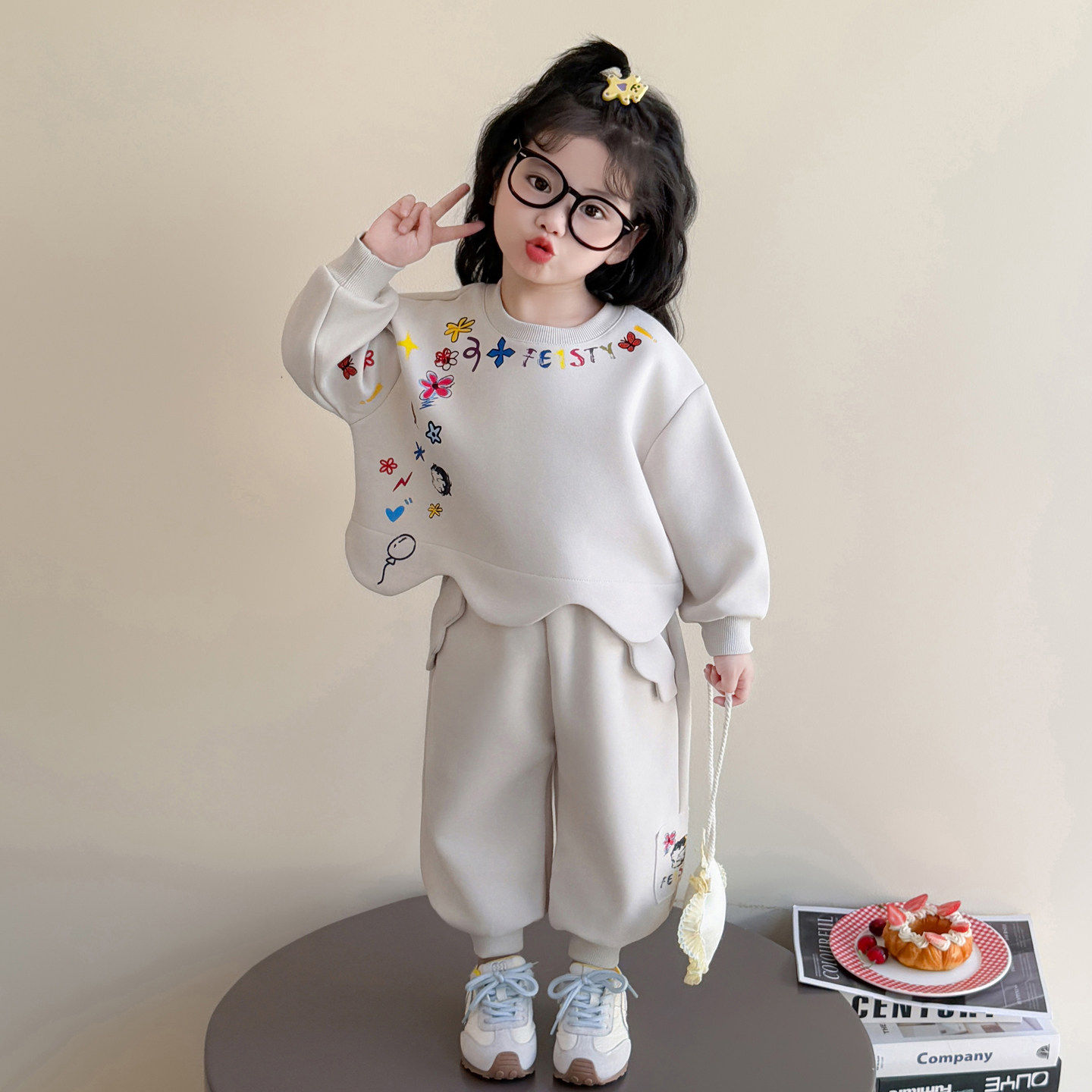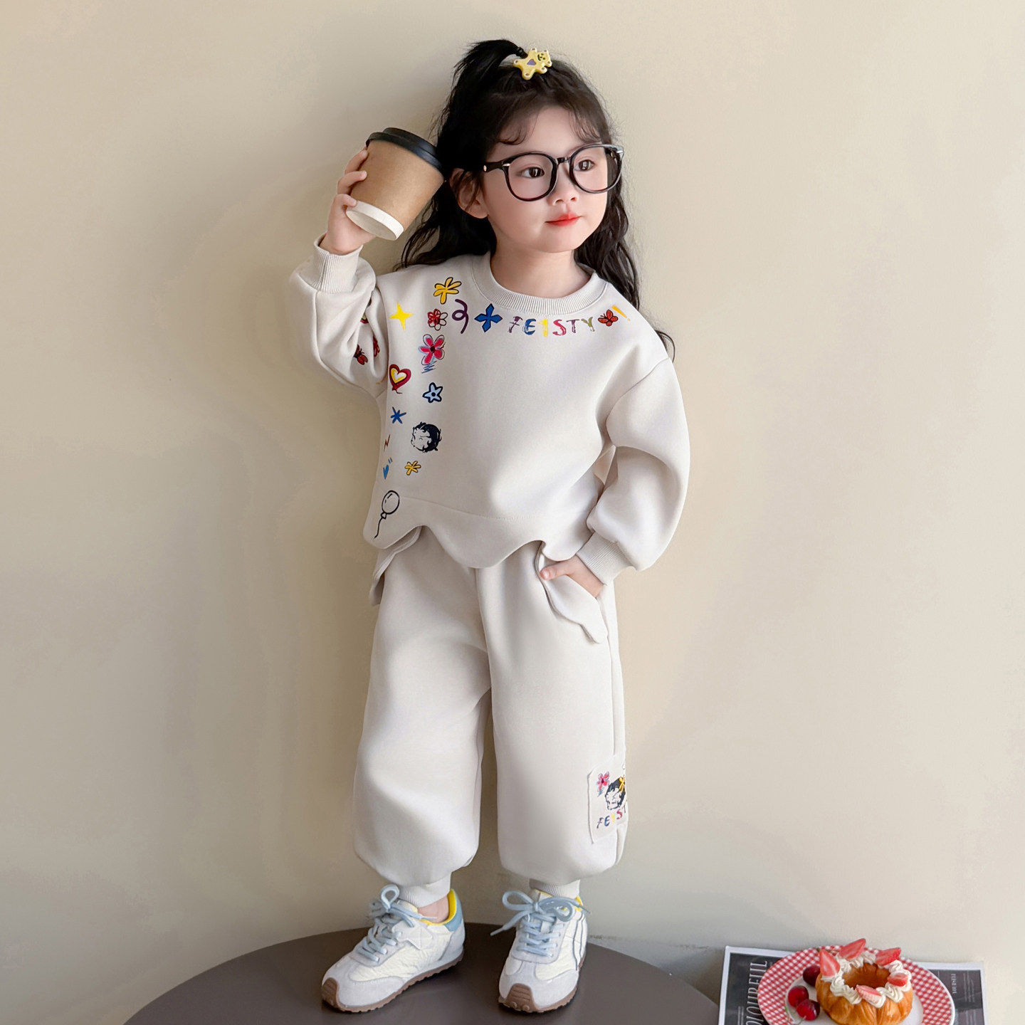 女童套装春季2026新款洋气儿童春装宝宝巨好看卡通甜美卫衣两件套
