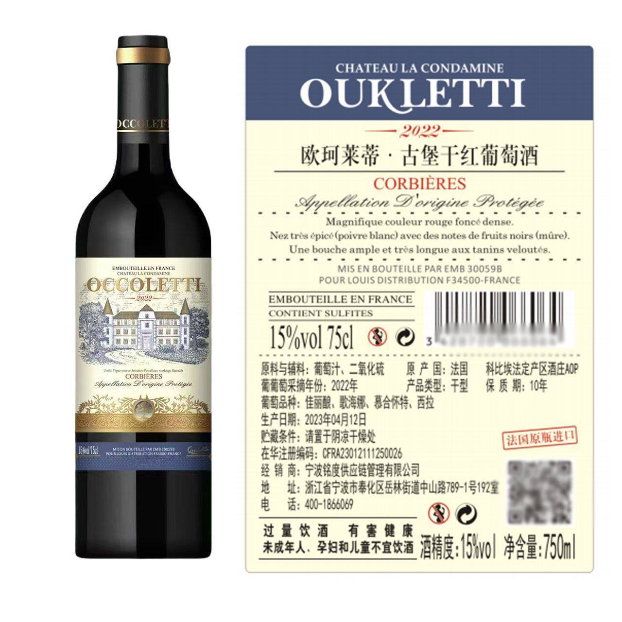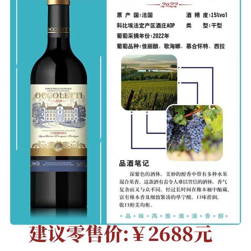 法国原瓶进口AOP级赤霞珠15度古堡干红葡萄酒750ml*2瓶礼盒装红酒