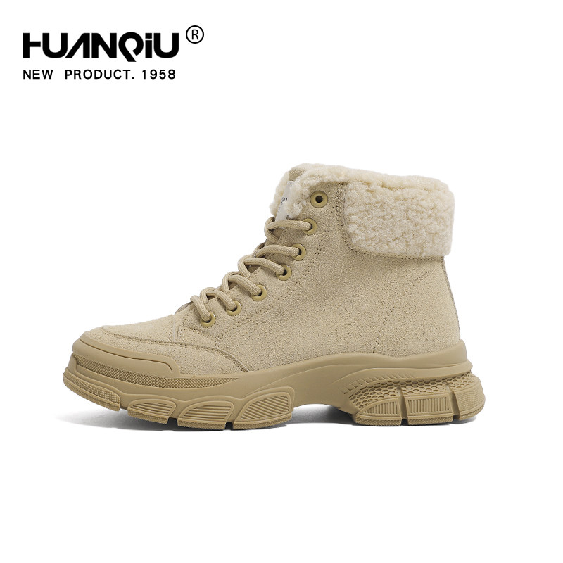 miu家厚底雪地靴女冬季真皮短靴羊毛侧拉链增高厚底加绒毛毛棉鞋
