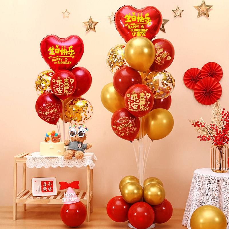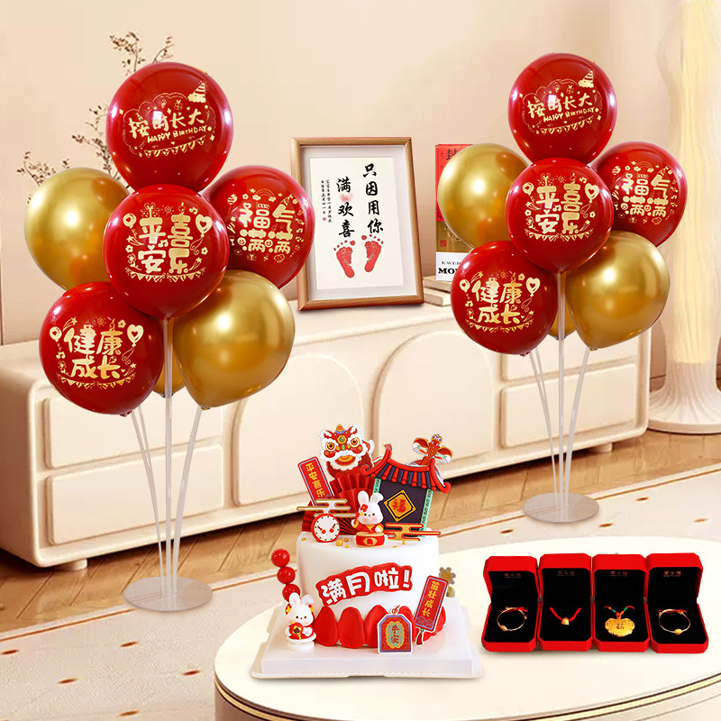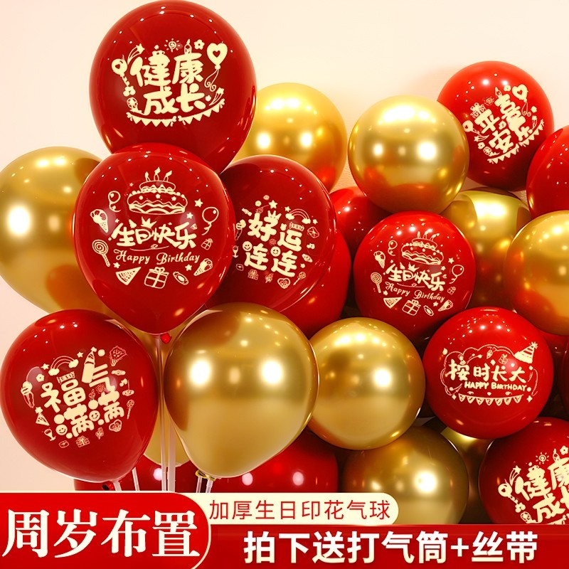 生日气球装饰周岁礼场景布置氛围感儿童女宝宝男孩满月宴百天红色