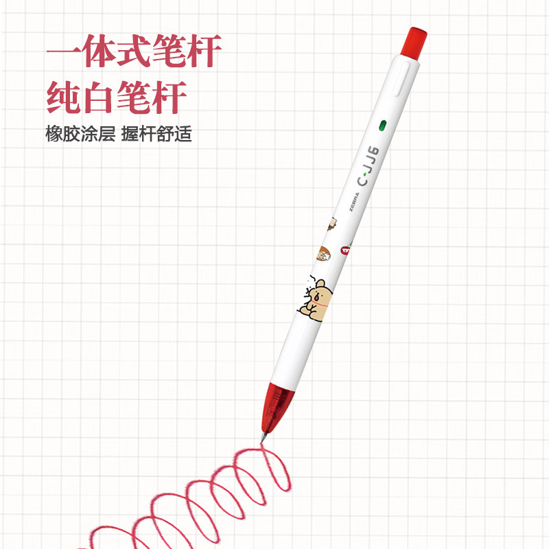 日本zebra斑马红笔C-JJ6线条小狗限定DIY卡通水笔按动红色中性笔