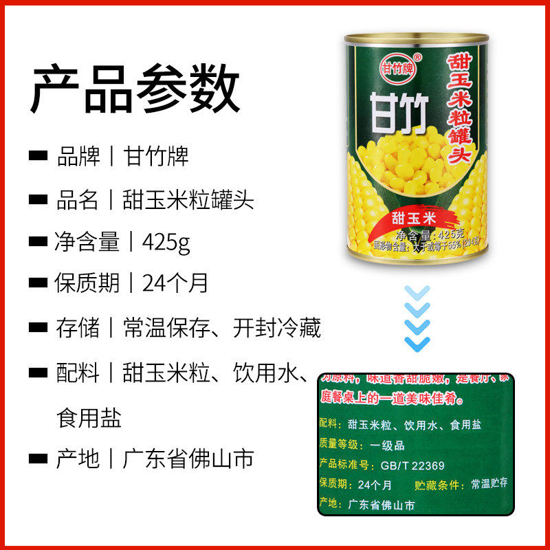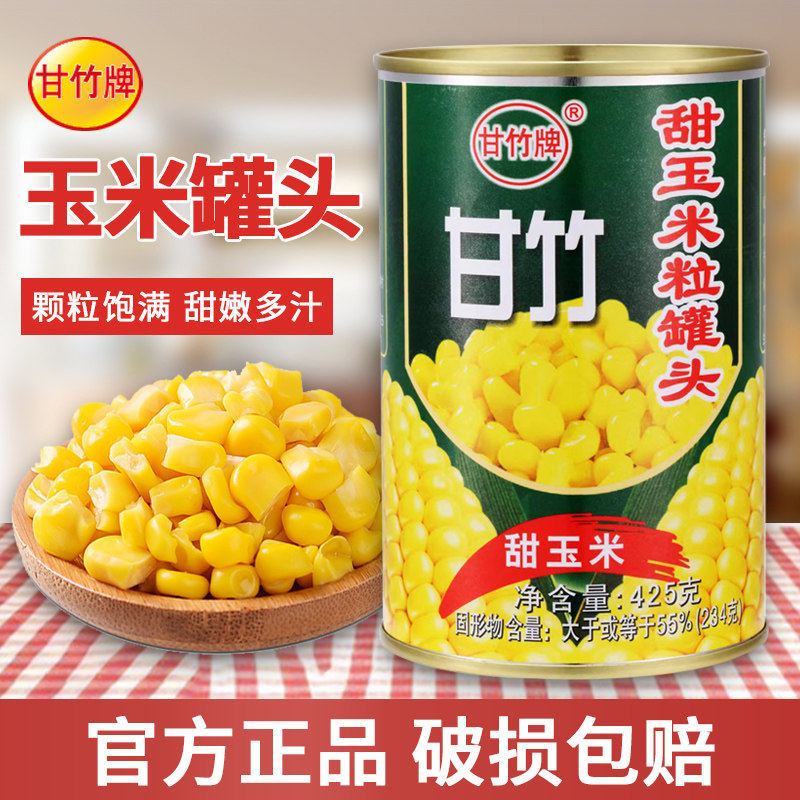 甘竹牌甜玉米罐头425g家用商用甜玉米粒低脂低卡健身钓鱼打窝神器