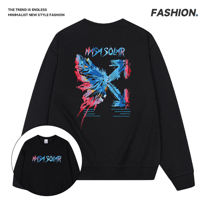 2025冬季官方新款春秋季百搭简约纯色上衣字母印花宽松圆领卫衣