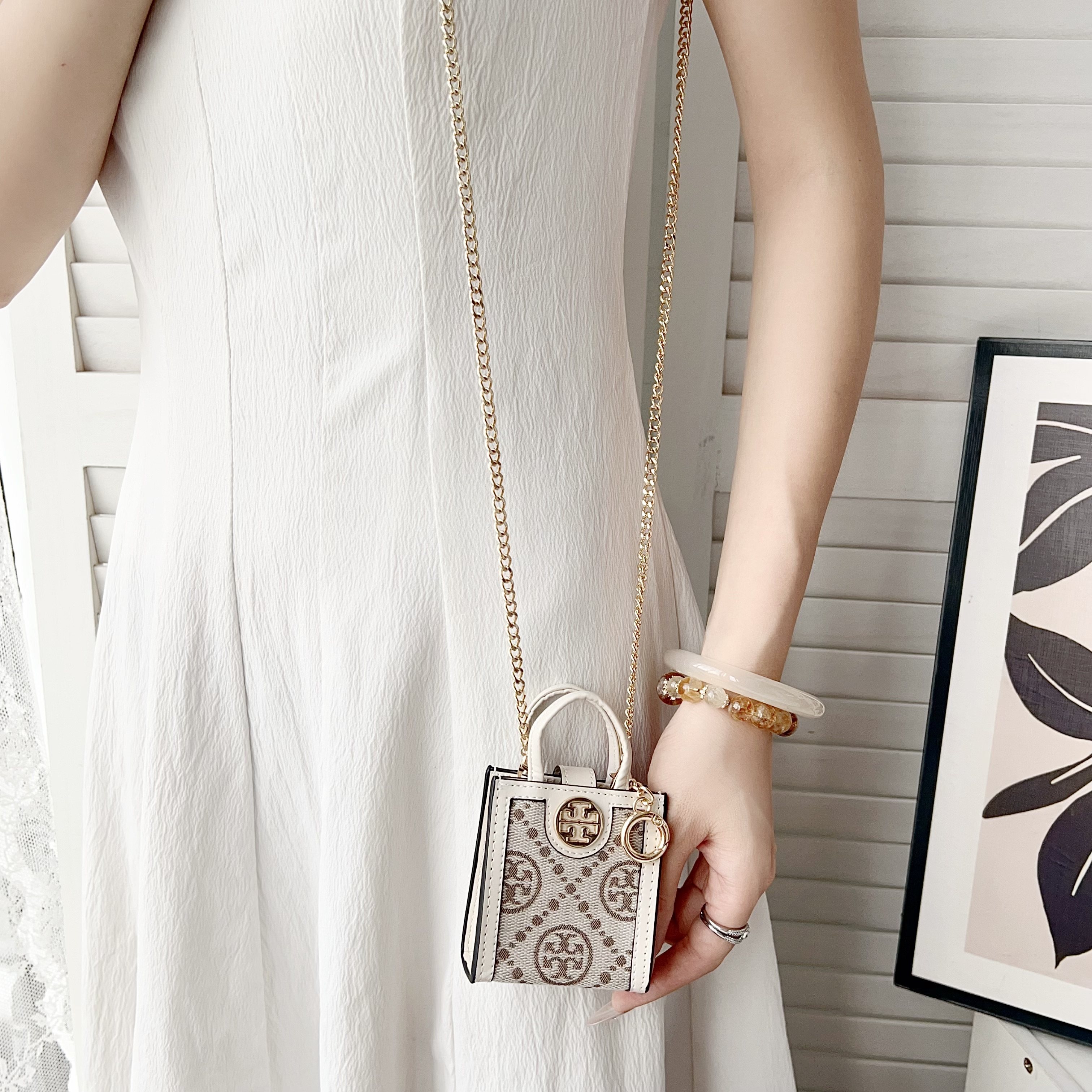新款潮牌老花斜挎手提包适用苹果无线蓝牙耳机AirPods pro二代AirPods 1/2/3/4代高档大牌布艺华为防摔挂绳女