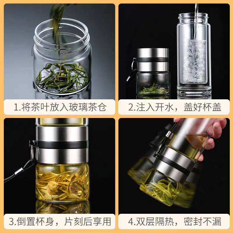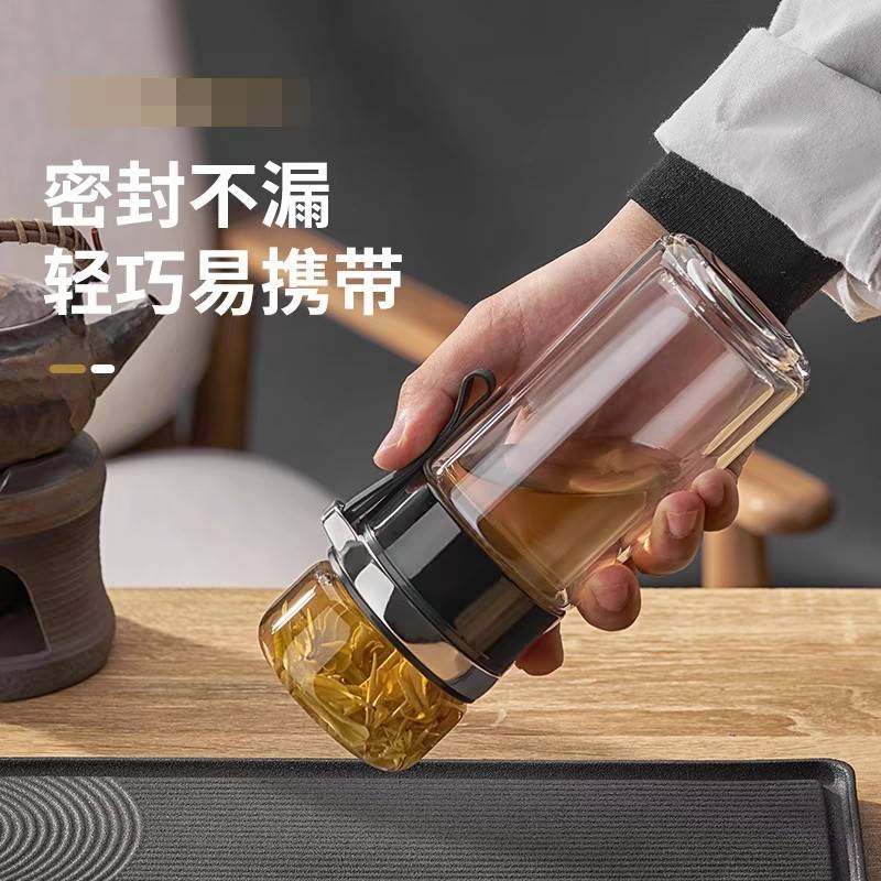 高硼硅茶水分离喝水玻璃杯双层加厚便携耐高温男士泡茶杯耐摔夏季