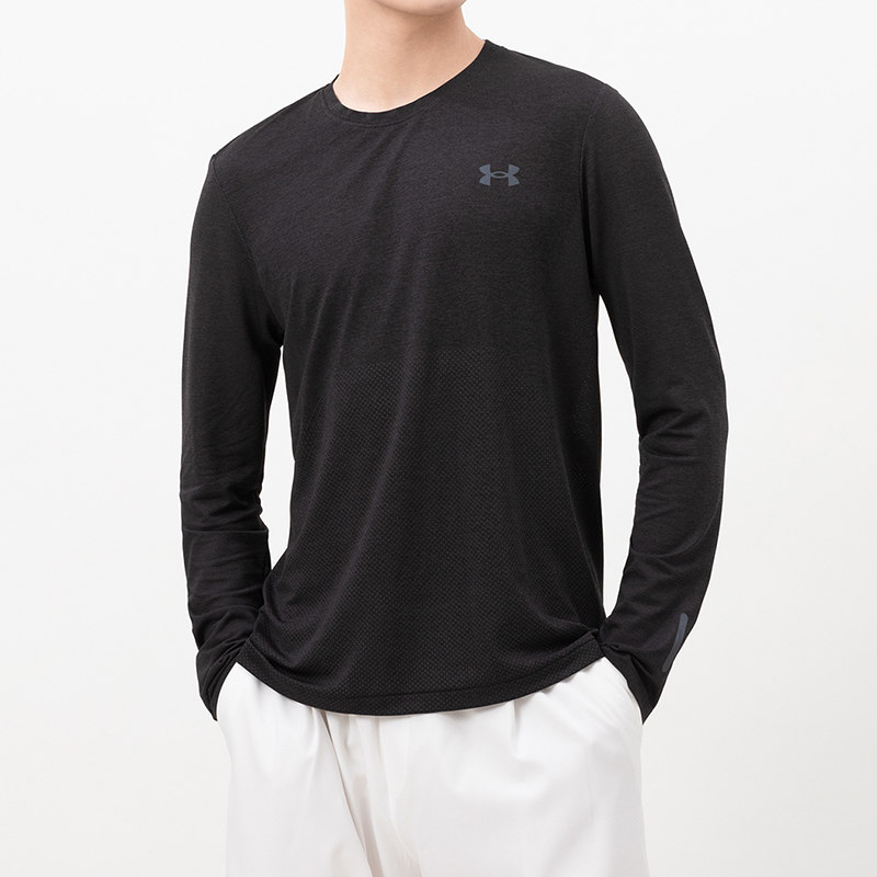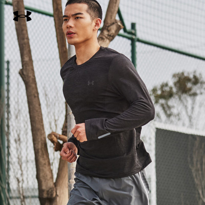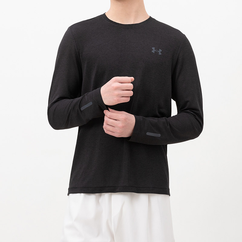 安德玛长袖T恤男篮球跑步训练休闲运动服官方旗舰黑色健身速干衣