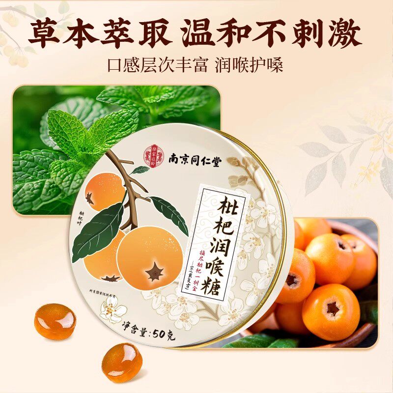 同仁堂枇杷润喉糖清肺化痰止咳金银花梨膏薄荷糖果护喉嗓教师健康