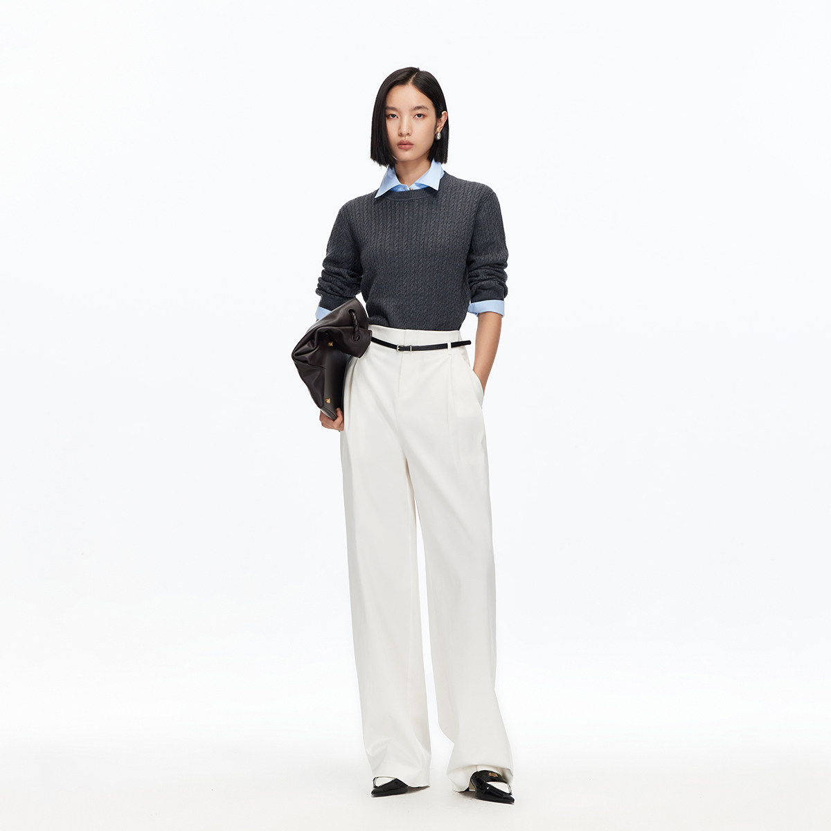 可拆假两件增加造型层次;麻花针织复古时尚