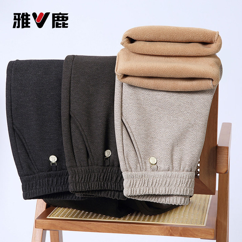 雅鹿时尚妈妈冬装裤子加绒加厚中老年女秋冬阔腿裤中年人休闲长裤