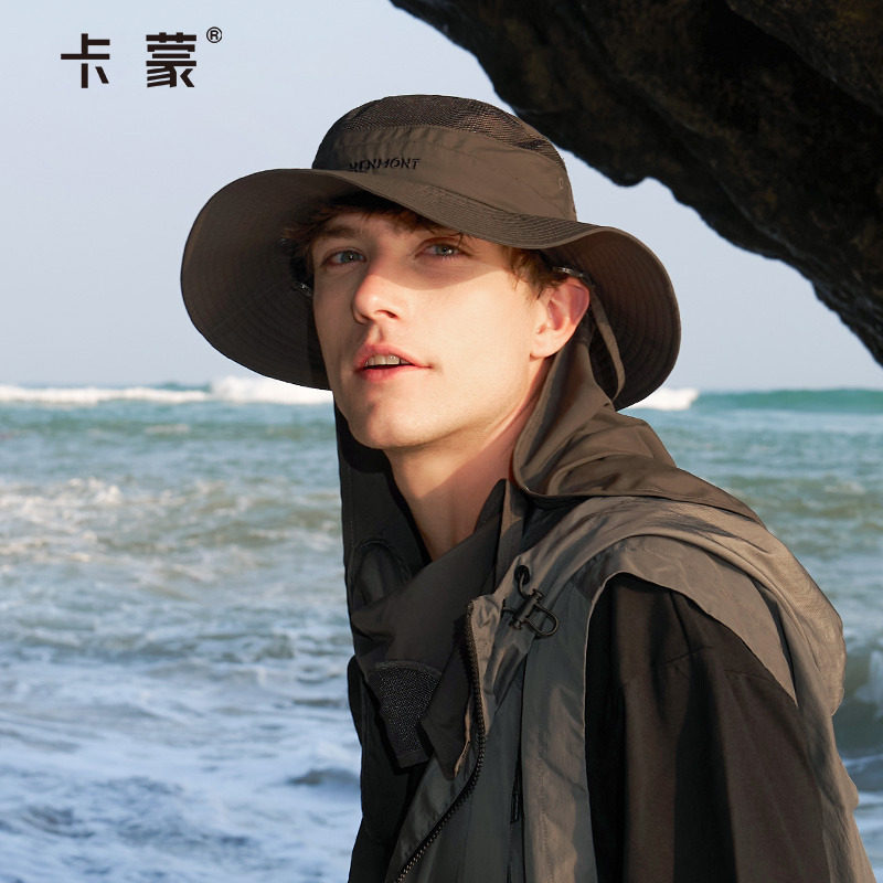 卡蒙男士徒步户外登山专业遮脸防晒渔夫帽夏透气速干可折叠太阳帽