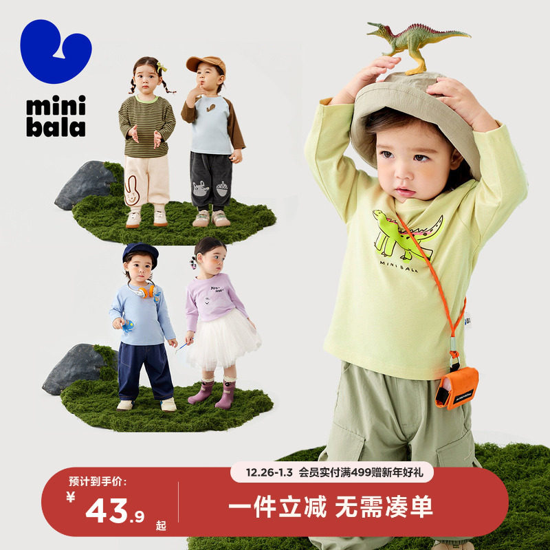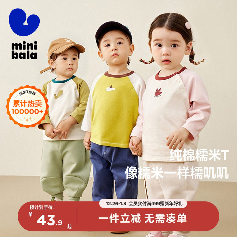 [糯米T]迷你巴拉巴拉男童女宝儿童长袖T恤纯棉婴儿宝宝2025秋新品