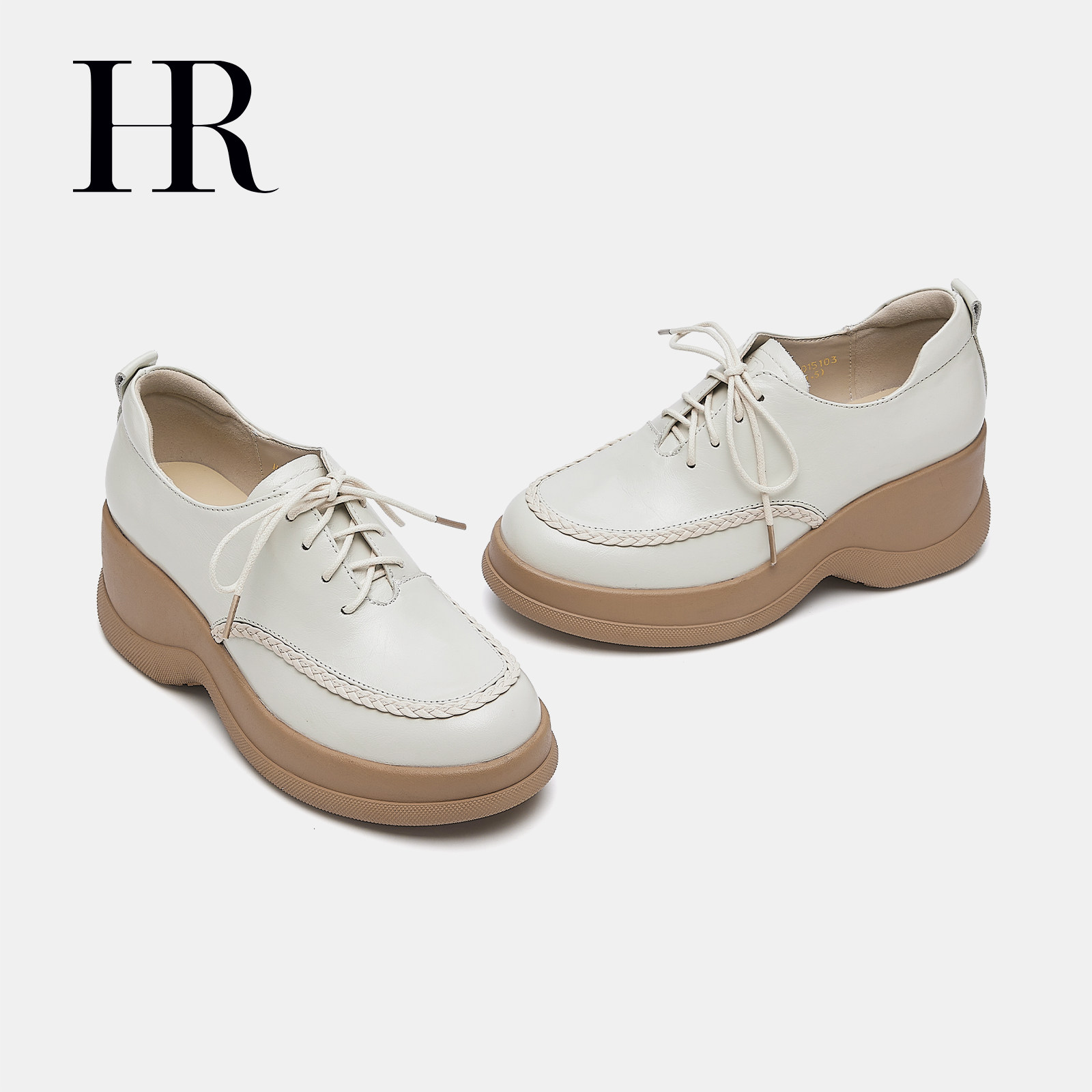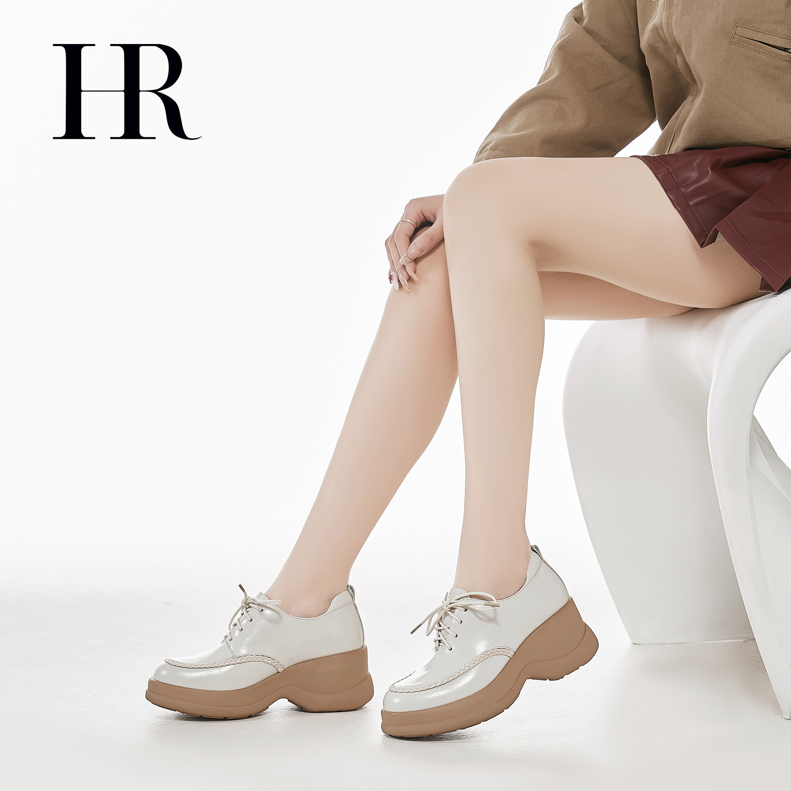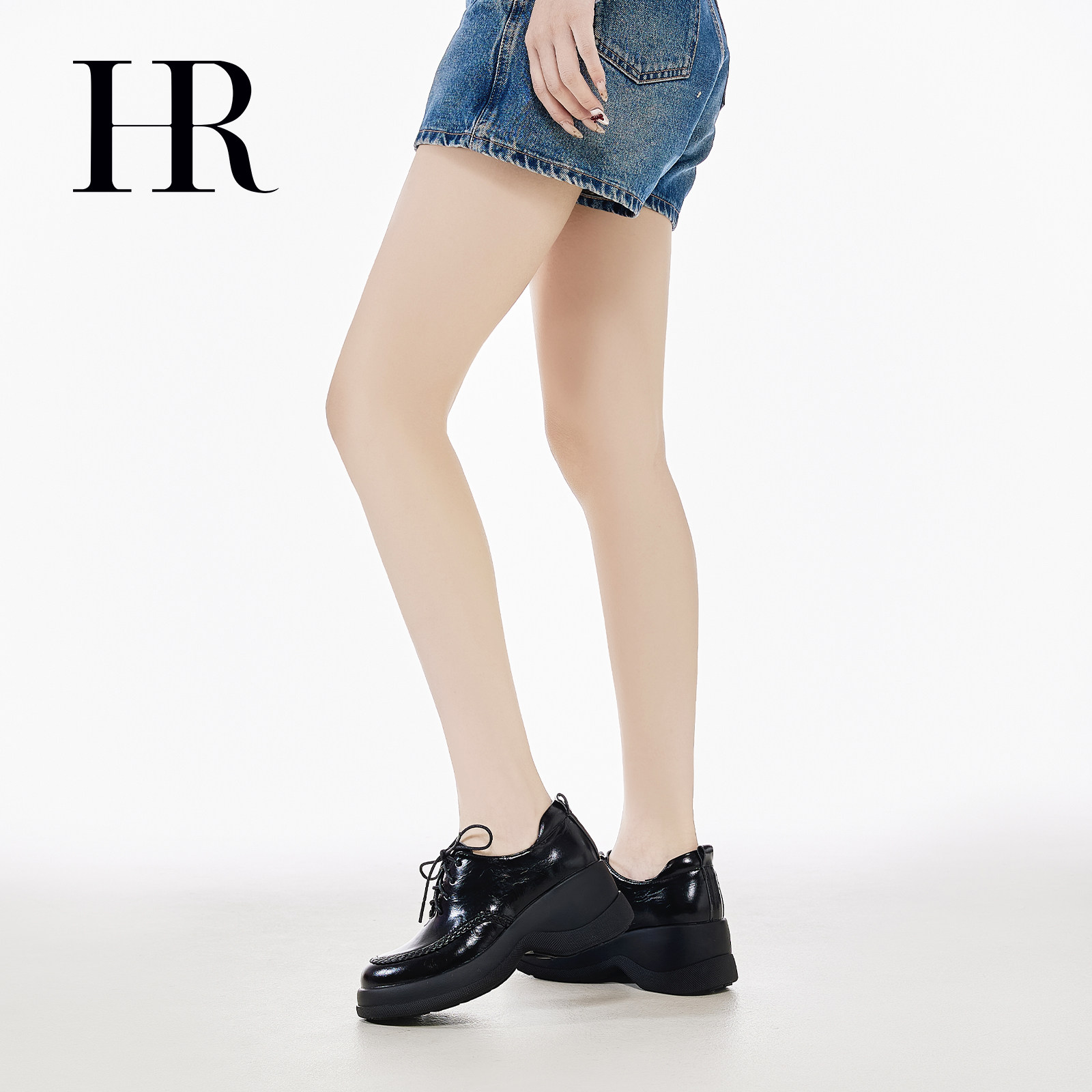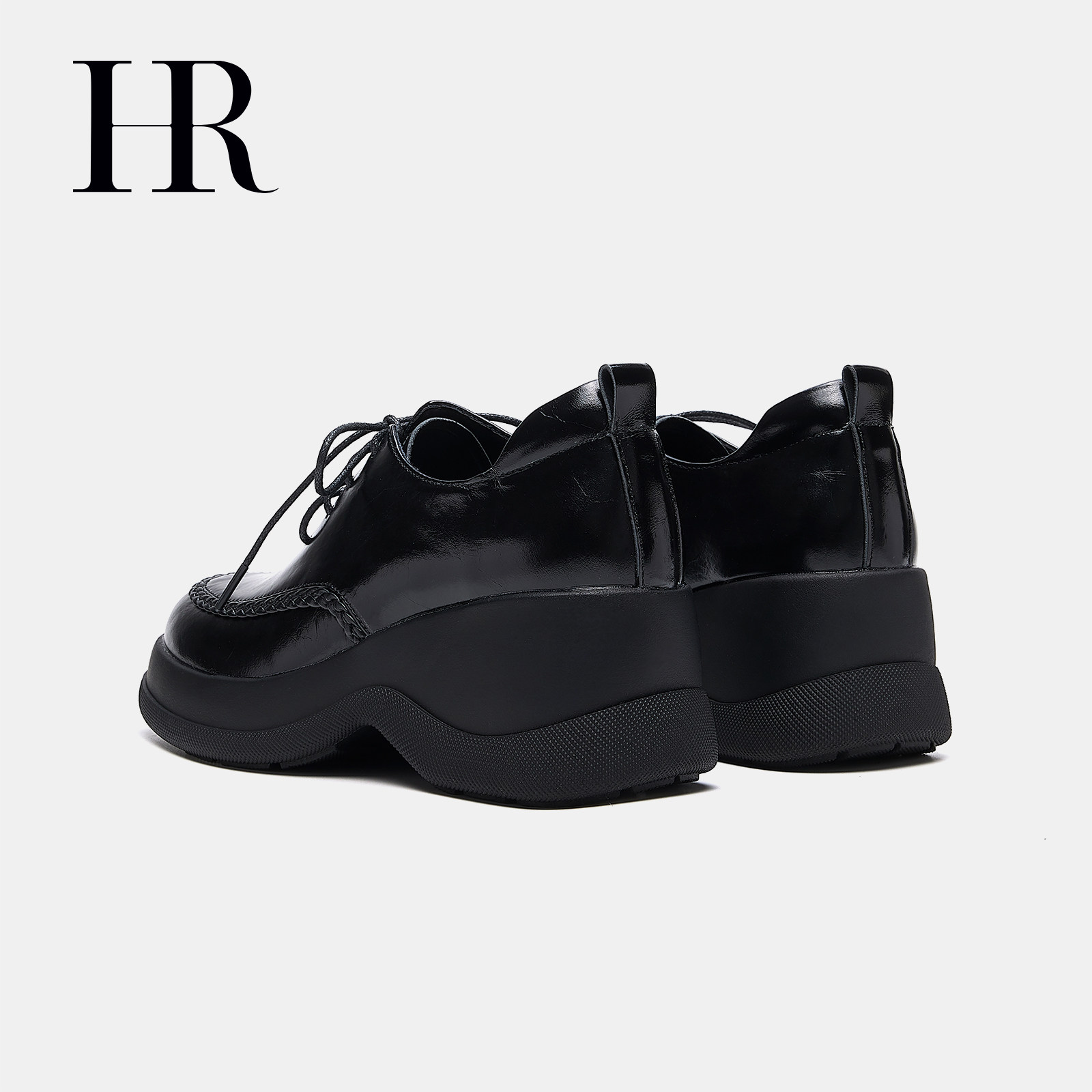 HR赫莲娜德比鞋2026春季新款女鞋子坡跟增高牛皮系带复古小皮鞋