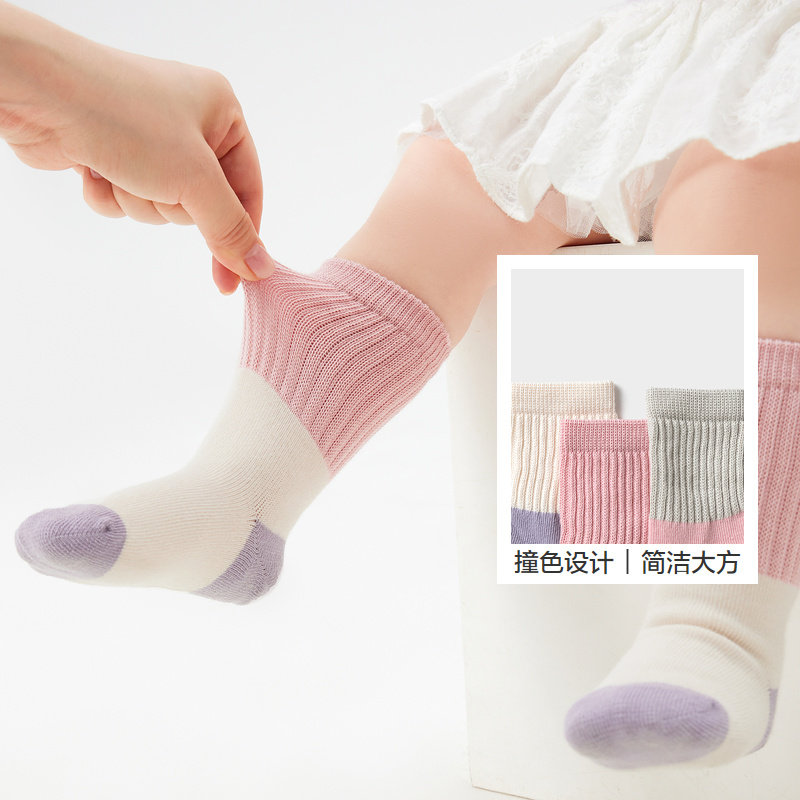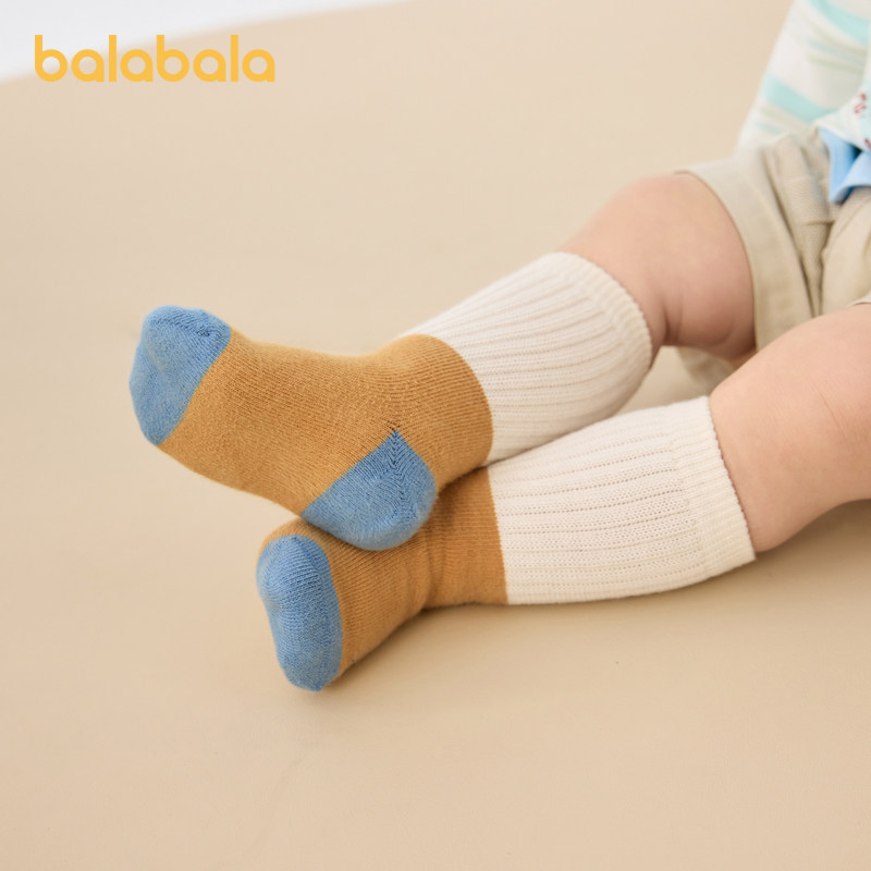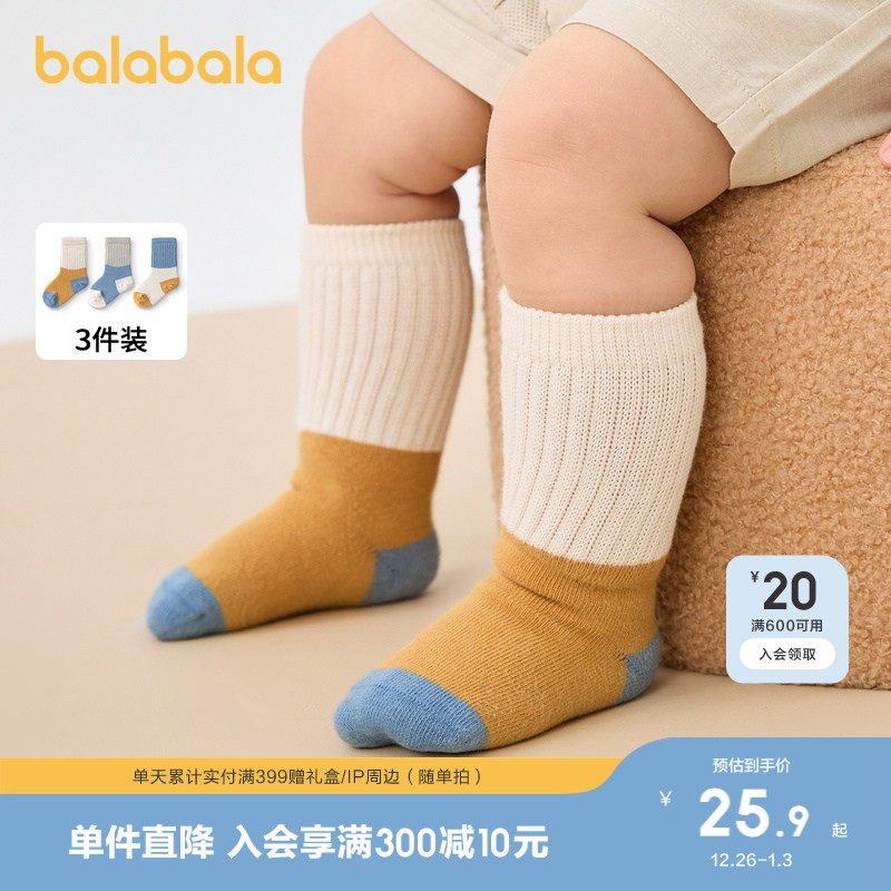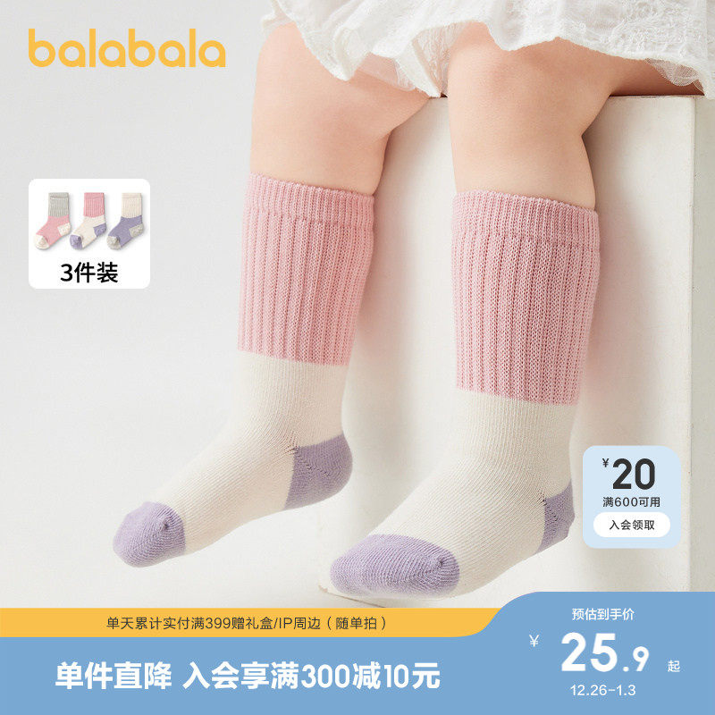 巴拉巴拉宝宝中筒袜子棉春秋男女童新生婴儿童袜拼色不勒腿三双装