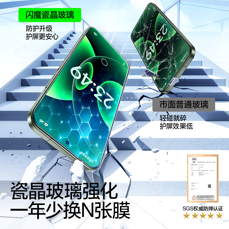 秒贴瓷晶钢化膜 好贴无气泡 全屏覆盖