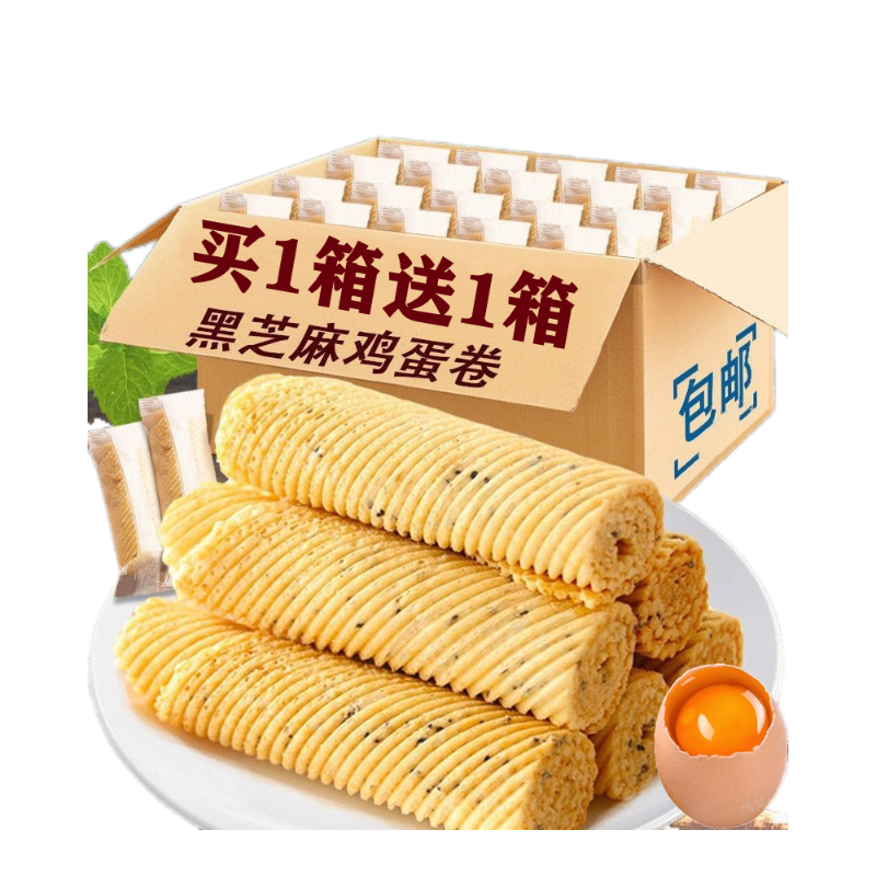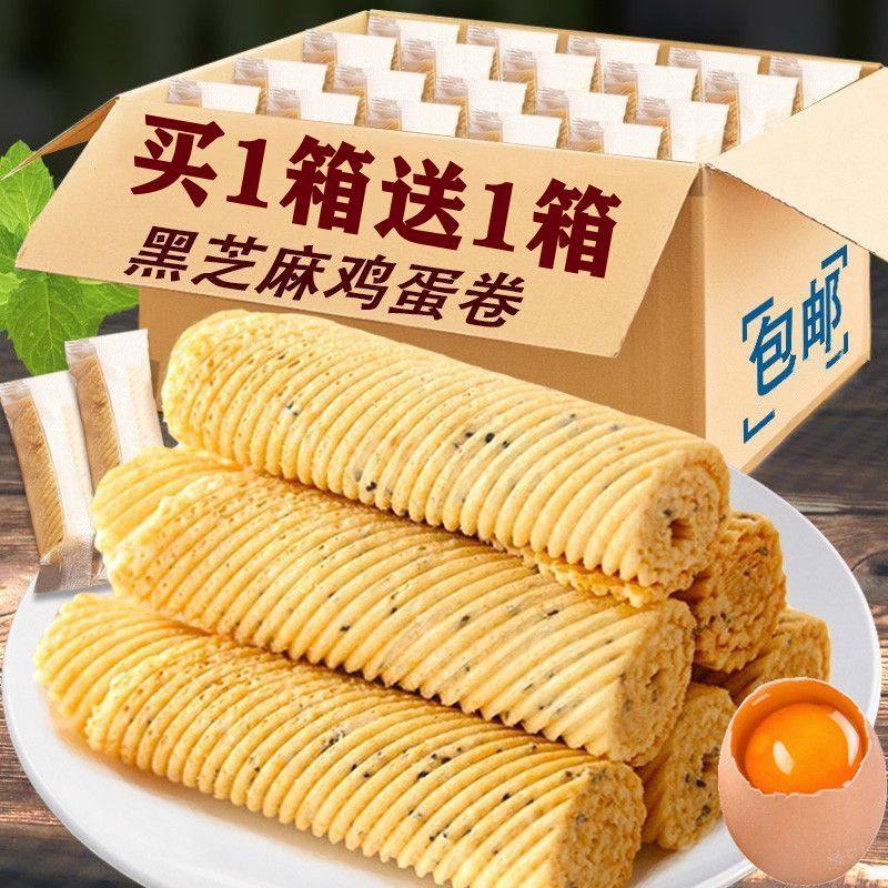 芈兔虎皮卷海苔咸蛋黄味黑金夹心鸡蛋卷饼干办公室零食小包装整箱