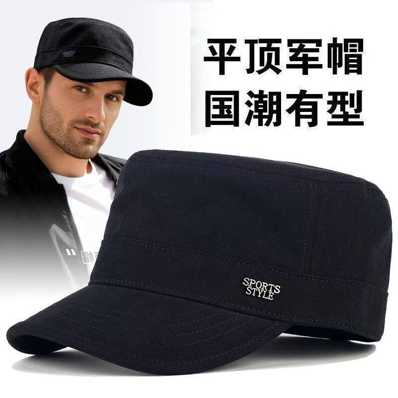 平顶帽男士后封口调节新款春秋休闲中老年纯棉鸭舌帽父亲时尚帽子