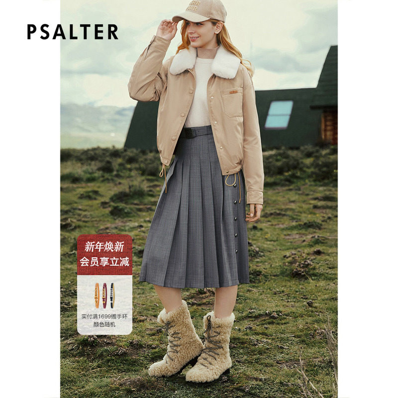 PSALTER诗篇学院风短款水貂毛领鹅绒羽绒服2025冬季新款