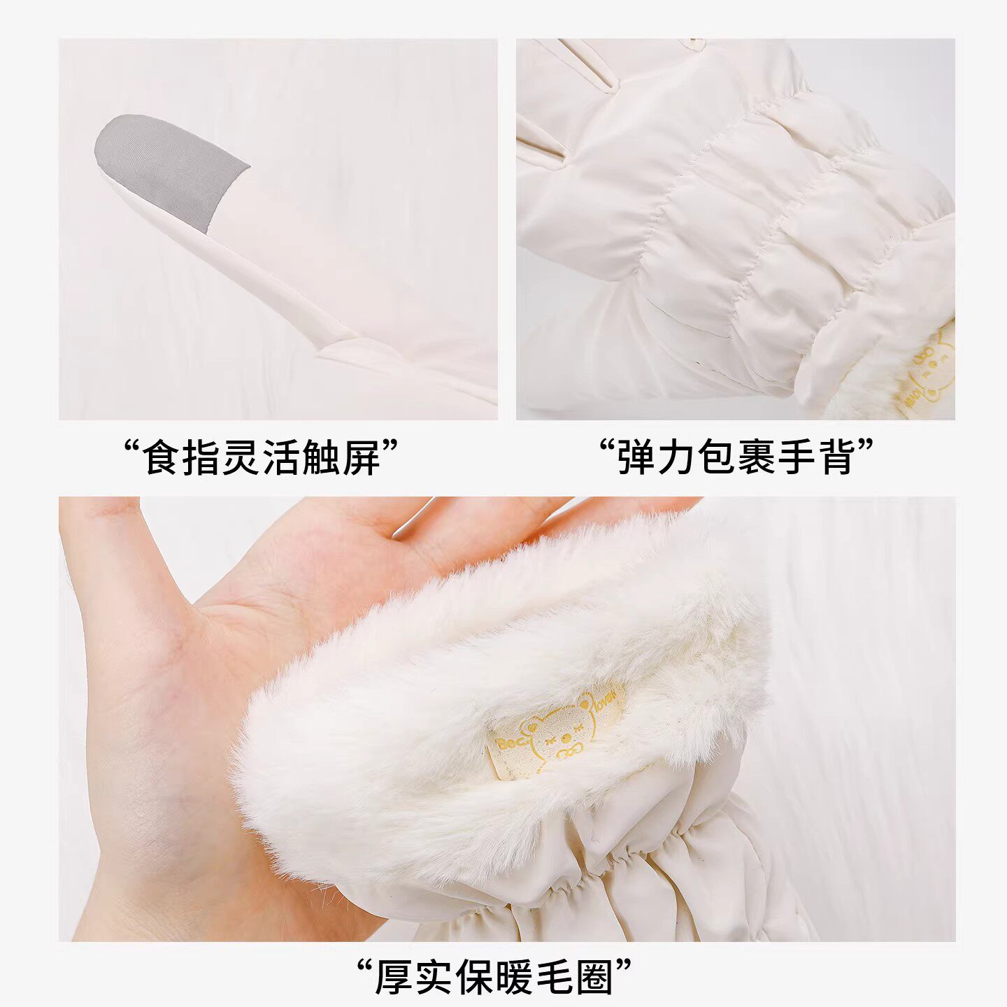 mikko联名可爱卡通猫咪毛绒手套女冬季翻盖半指触屏加厚骑行保暖