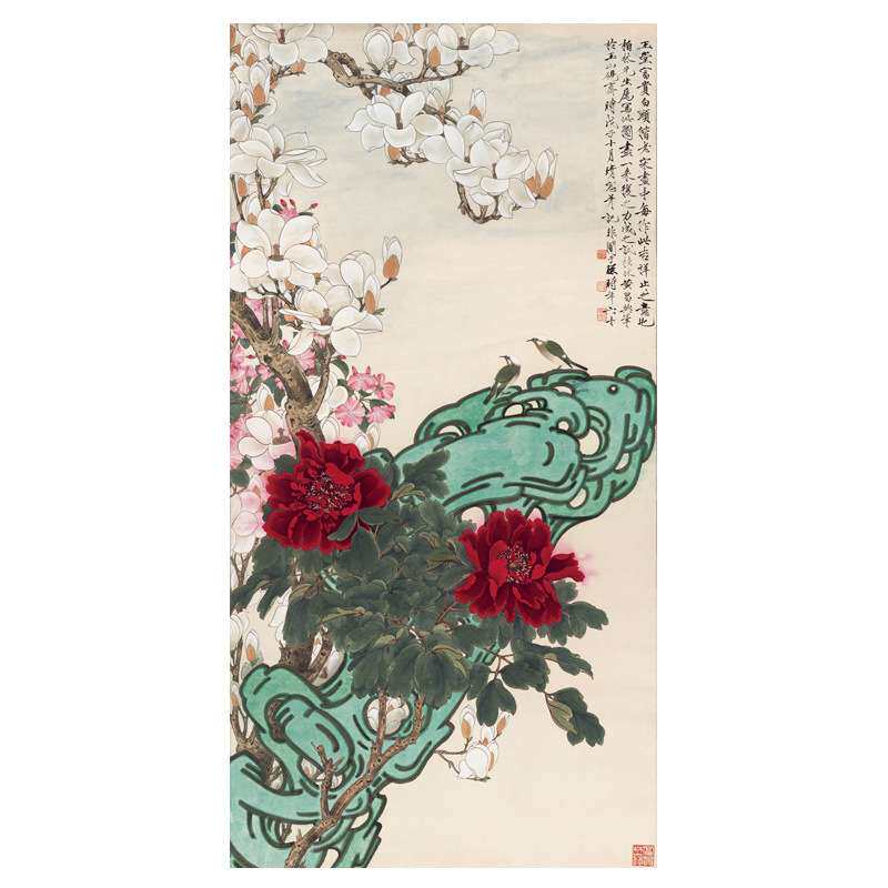 【质享家】家纺家饰-轻奢/复古国画玄关竖款富贵满堂花鸟卷轴挂画