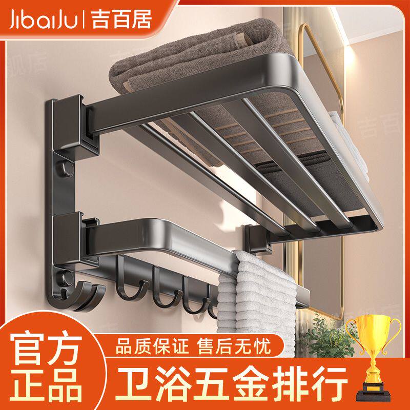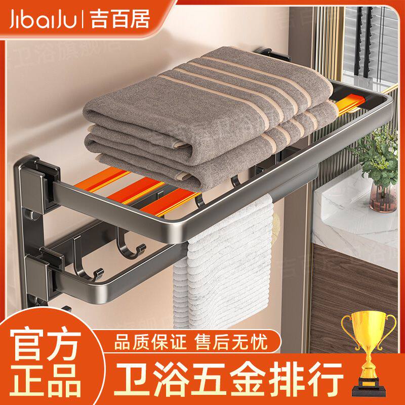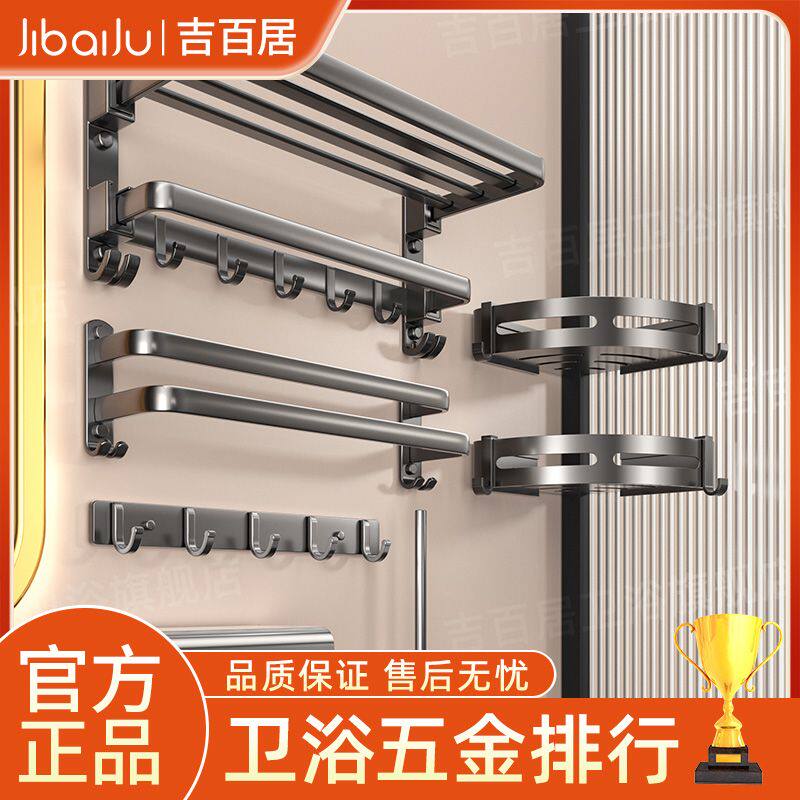 吉百居枪灰毛巾架卫生间置物架免打孔浴室架子一体挂件厕所浴巾架