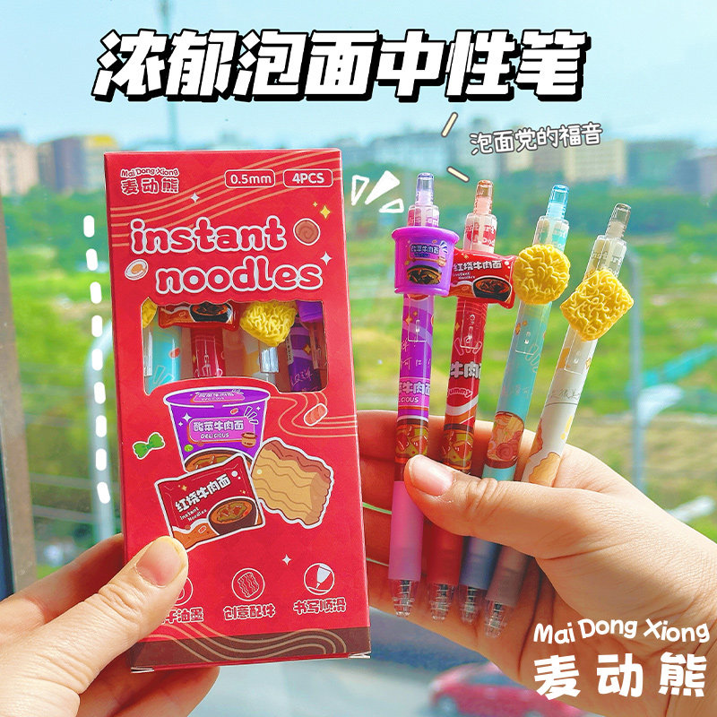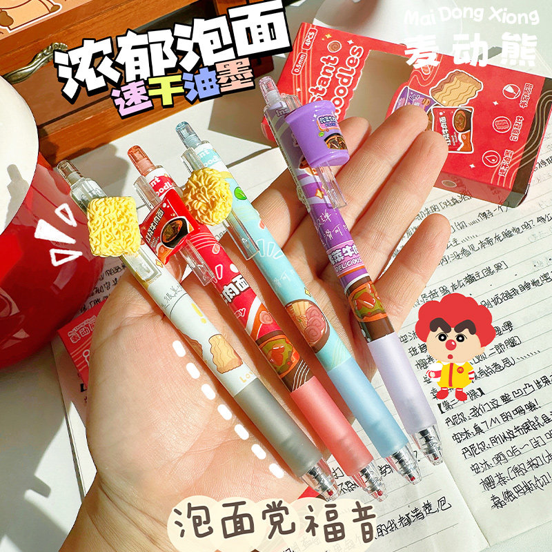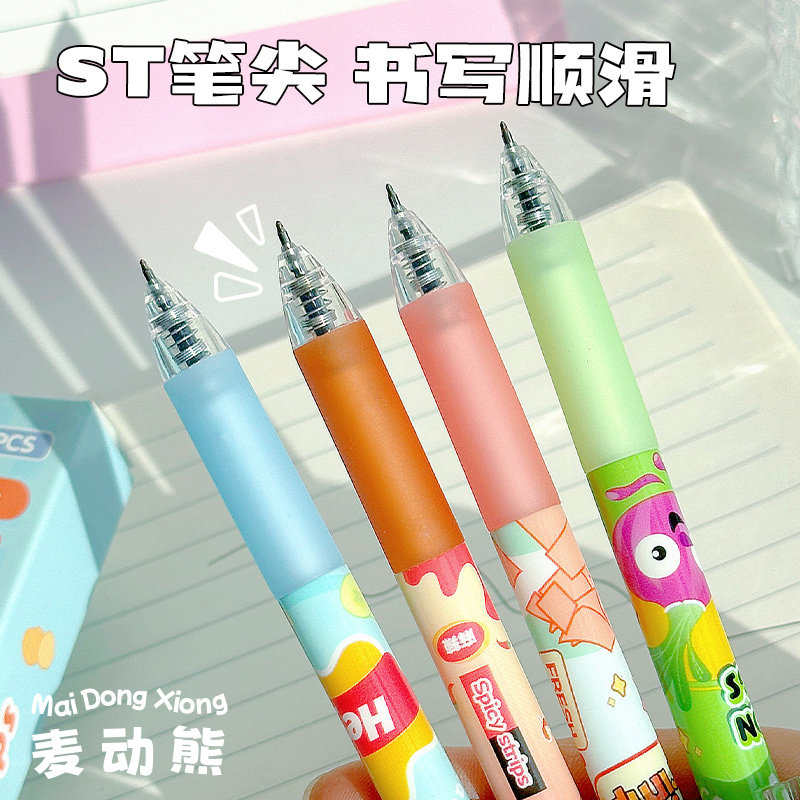 尤美炸鸡零食泡面薯片按动按压式中性笔水笔签字笔黑色0.5mm黑笔针管st笔头日系可爱超萌少女心学生用高颜值