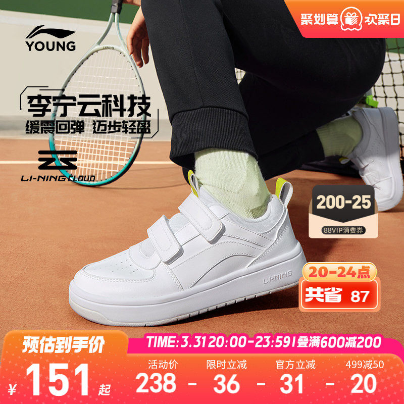 李宁儿童小白鞋轻便软底春夏款白色低帮板鞋男童鞋女中大童运动鞋