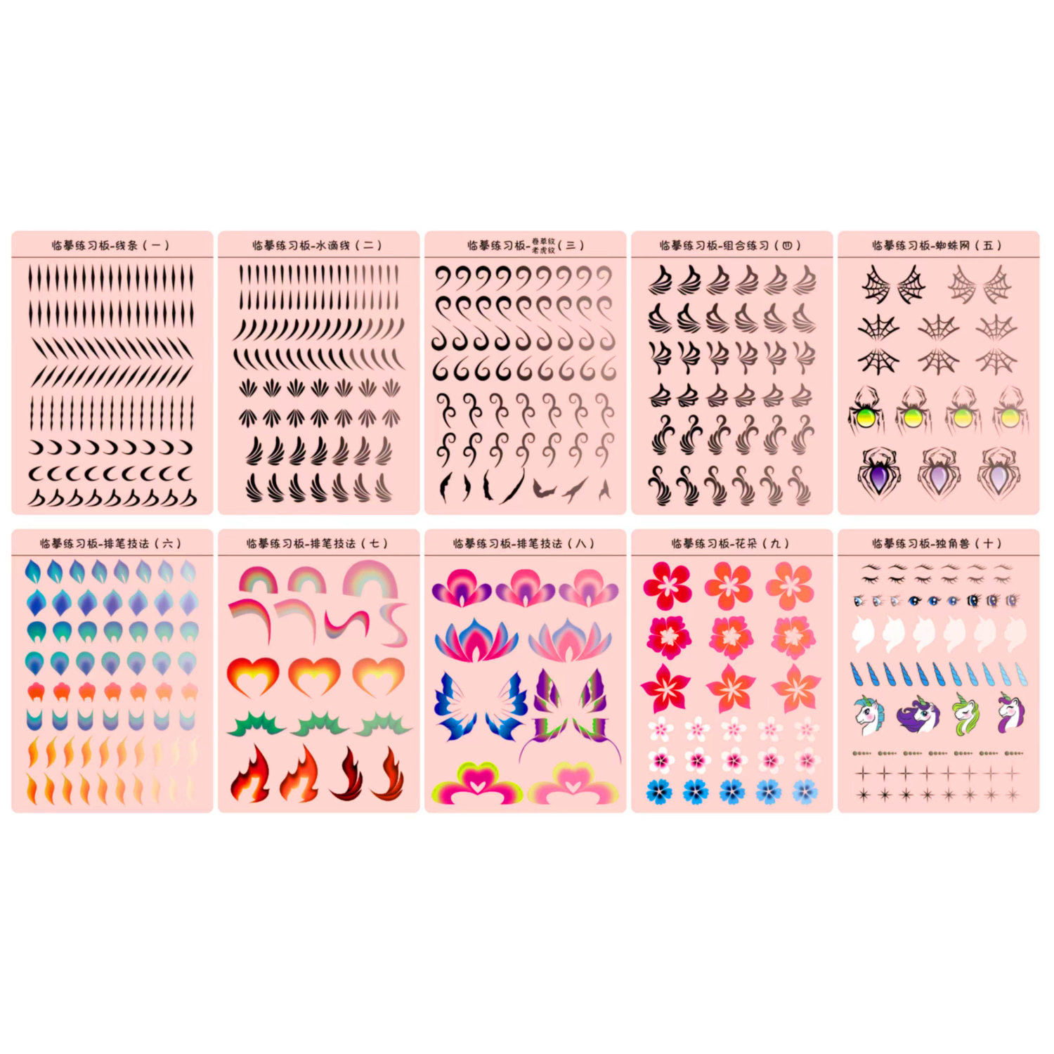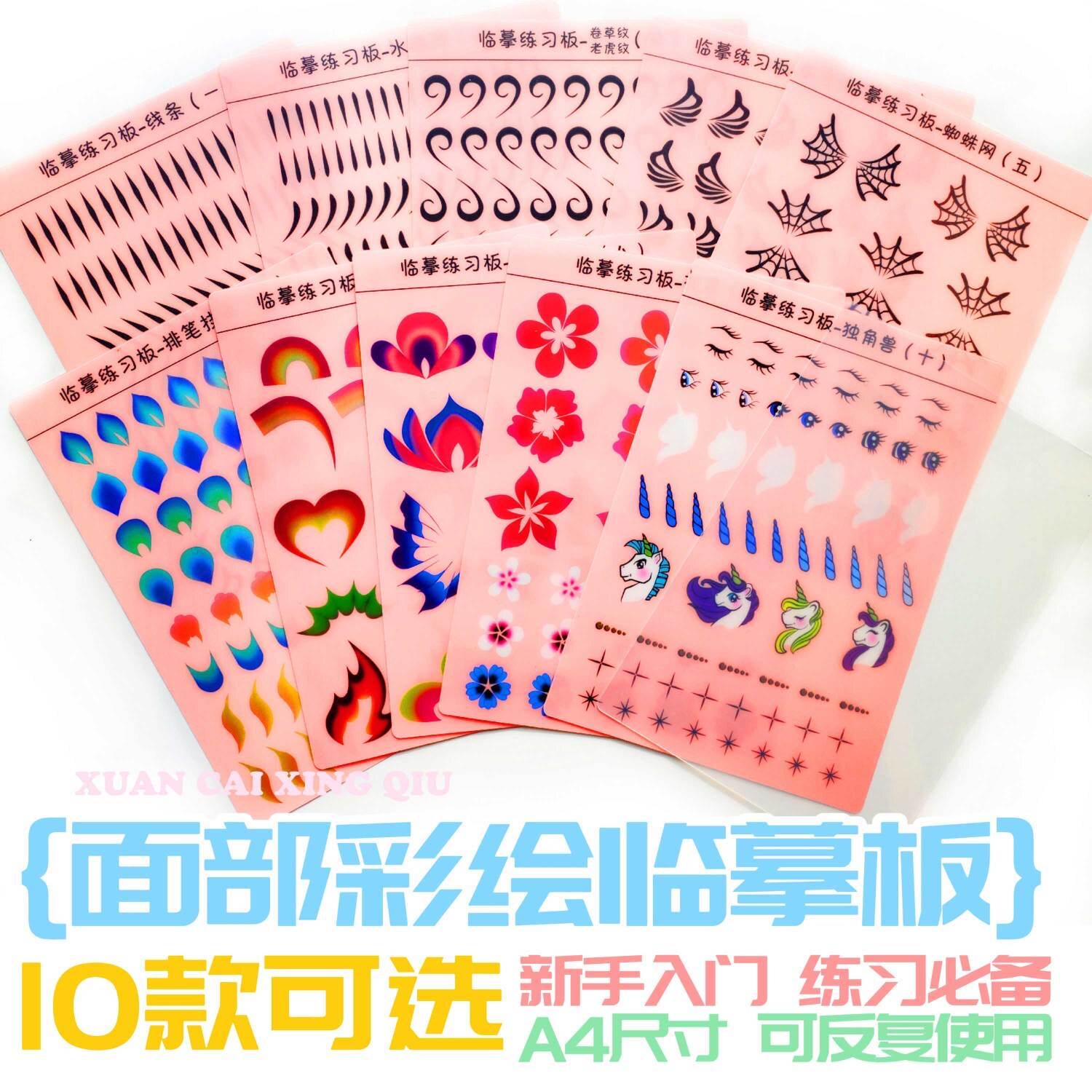 临摹练习板儿童面部彩绘线条水滴蝴蝶线排笔花朵蜘蛛练习送透明板
