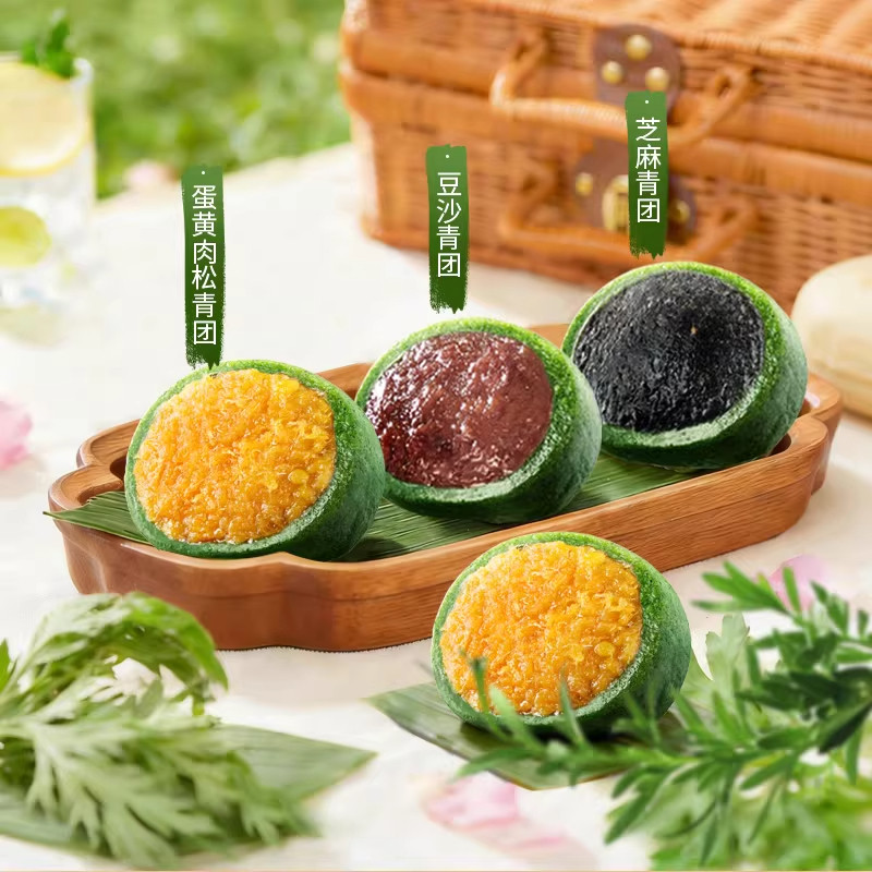 青团艾草豆沙蛋黄肉松清明即食网红零食糯米糍团中式糕点传统软糯