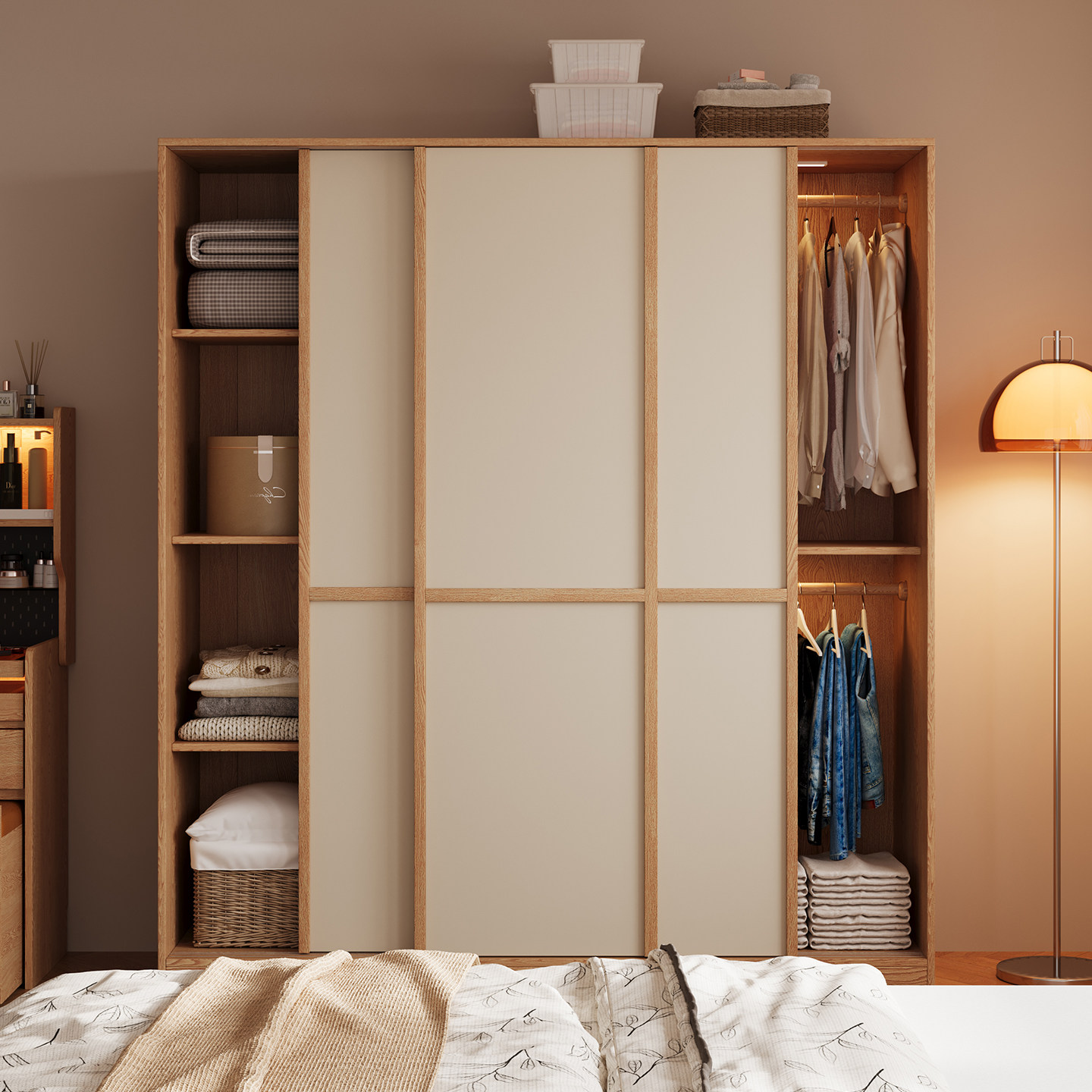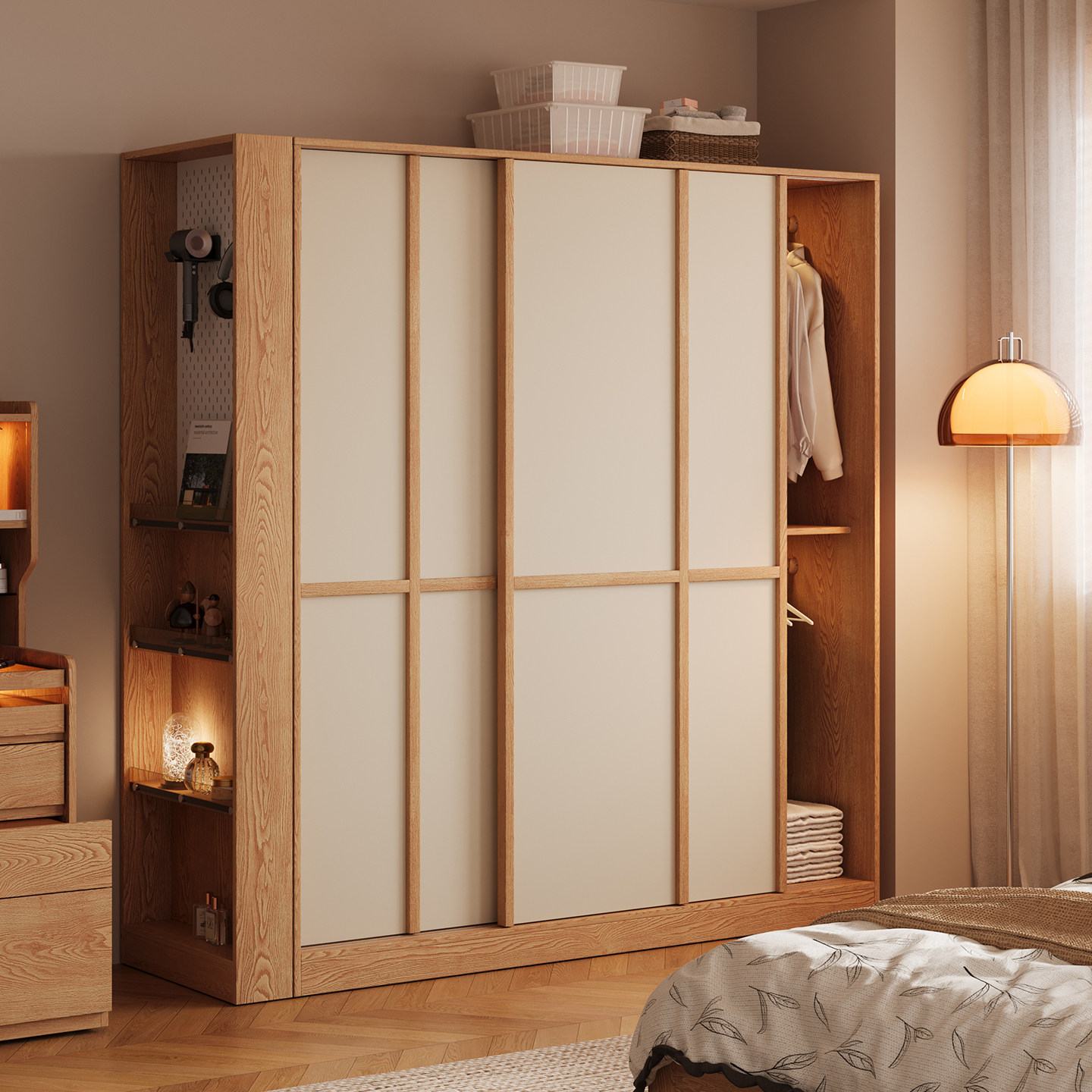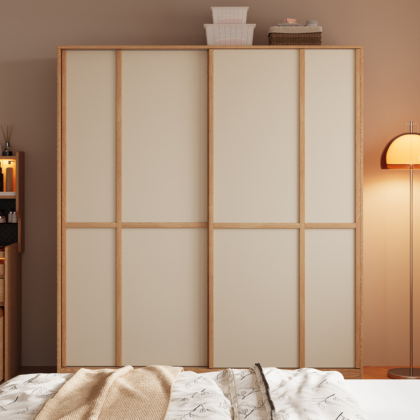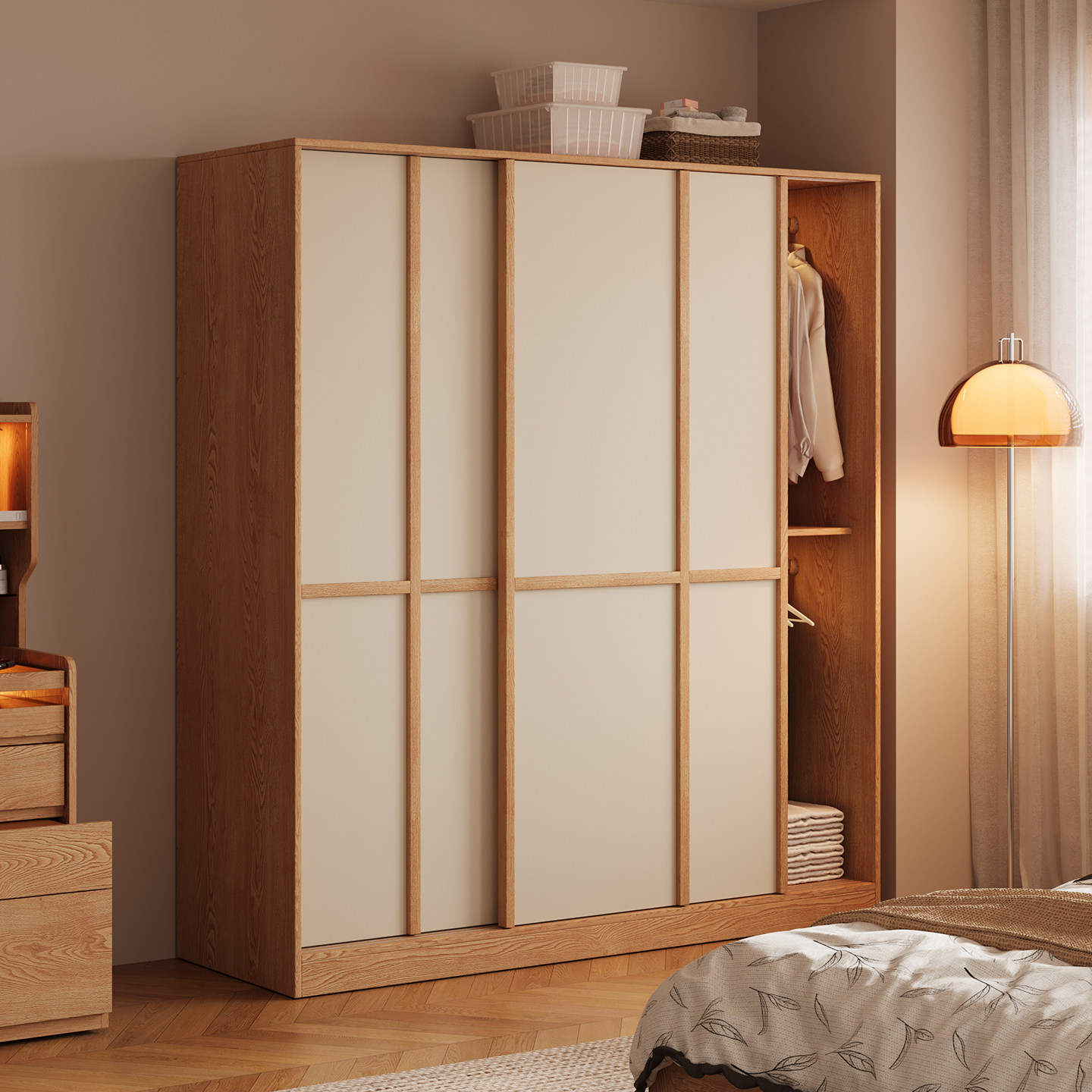 木兜家具格序衣柜趟门卧室家用实木推拉门款衣柜子骨骼线移门衣橱