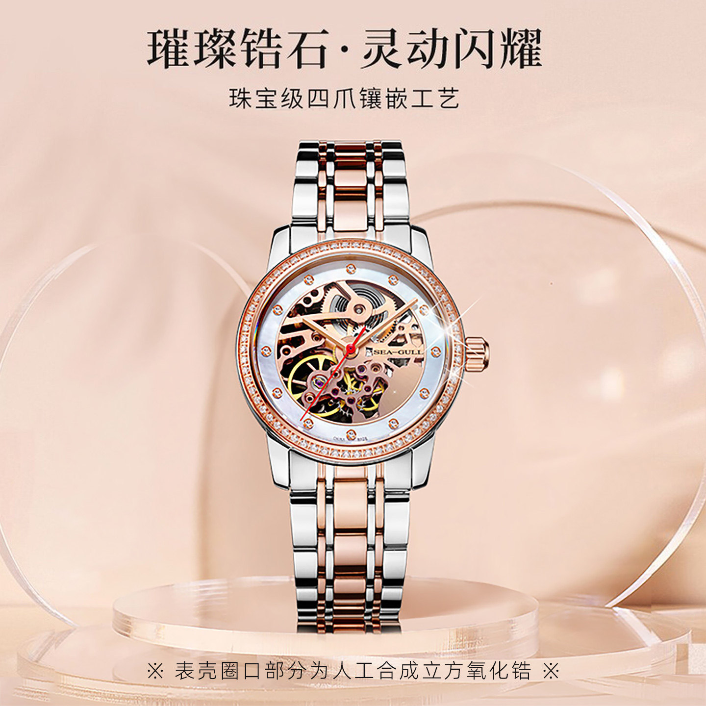 海鸥表手表女款简约时尚镂空腕表水钻钢带机械女表6120