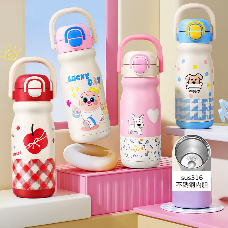 儿童保温杯母婴级316L不锈钢一盖三饮水杯学生上学专用吸管杯水壶