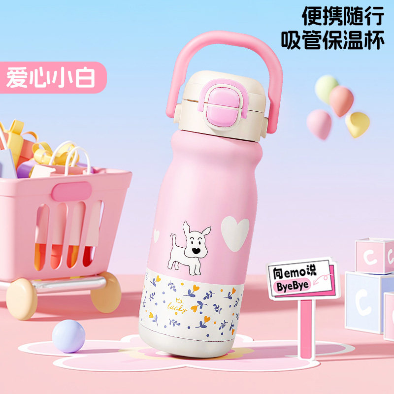 言仓线条小狗保温杯保冷便携水杯儿童学生女生情侣新年生日礼物