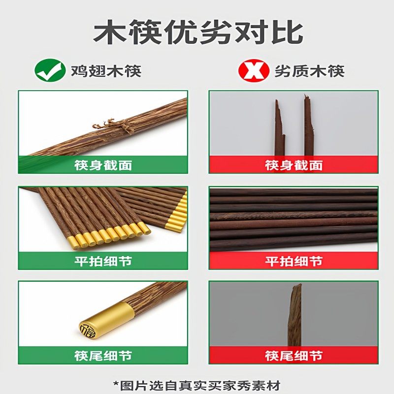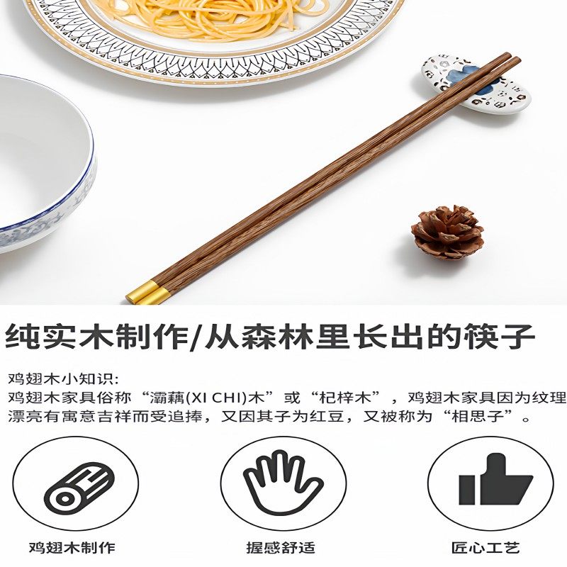 唐宗筷鸡翅木筷子家用新款无漆无蜡防霉抗菌中式实木筷可进洗碗机