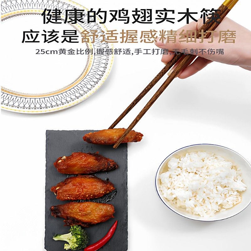 高档鸡翅木筷子家用2025新款耐高温商用防滑无漆无蜡快子实木加长