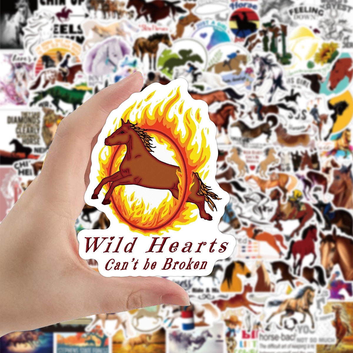 100张跨境马术涂鸦贴纸卡通骏马笔记本滑板车行李箱防水创意贴纸