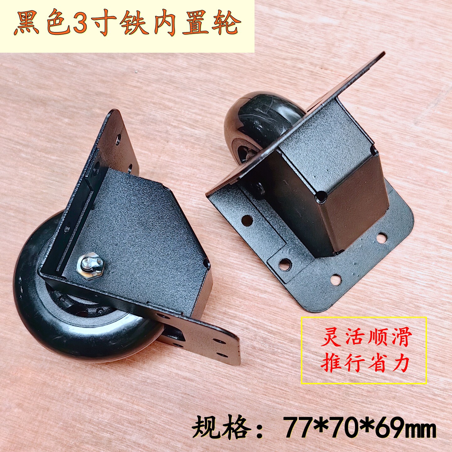 航空箱配件3寸黑色铁内置轮 拉杆箱轮子 外置轮 隐藏包边脚轮现货