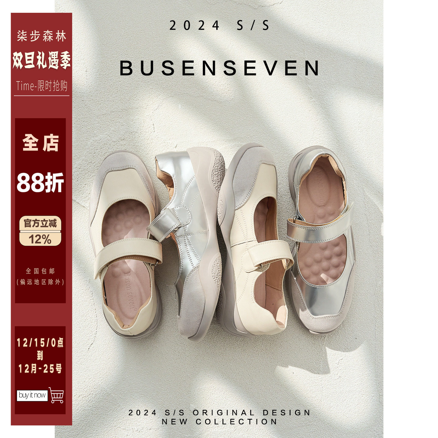 柒步森林"舒适芭蕾"厚底休闲魔术贴玛丽珍鞋子女春夏2025新款单鞋