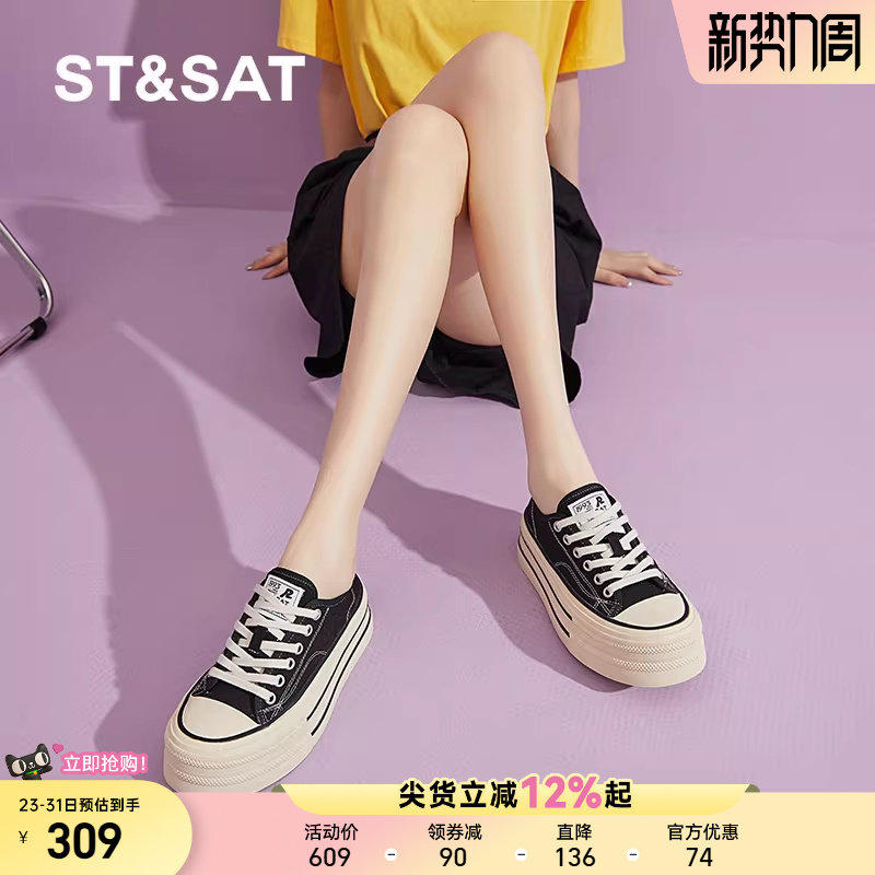 星期六帆布鞋女鞋春季新款百搭厚底小白鞋子女士增高透气松糕板鞋
