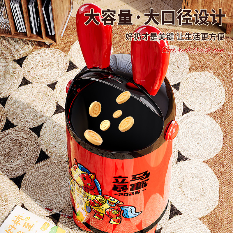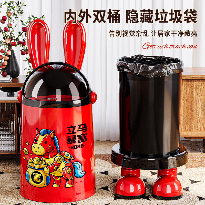 客厅垃圾桶家用2026新款高颜值卫生间带盖卧室纸篓可爱创意收纳桶