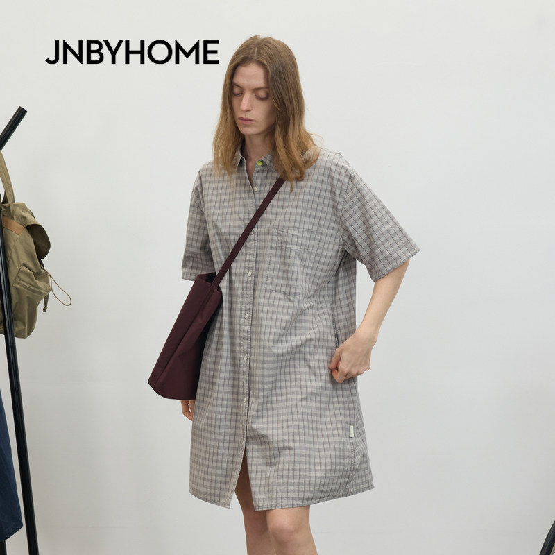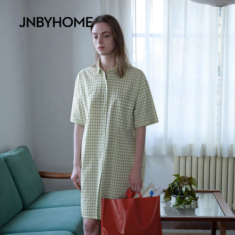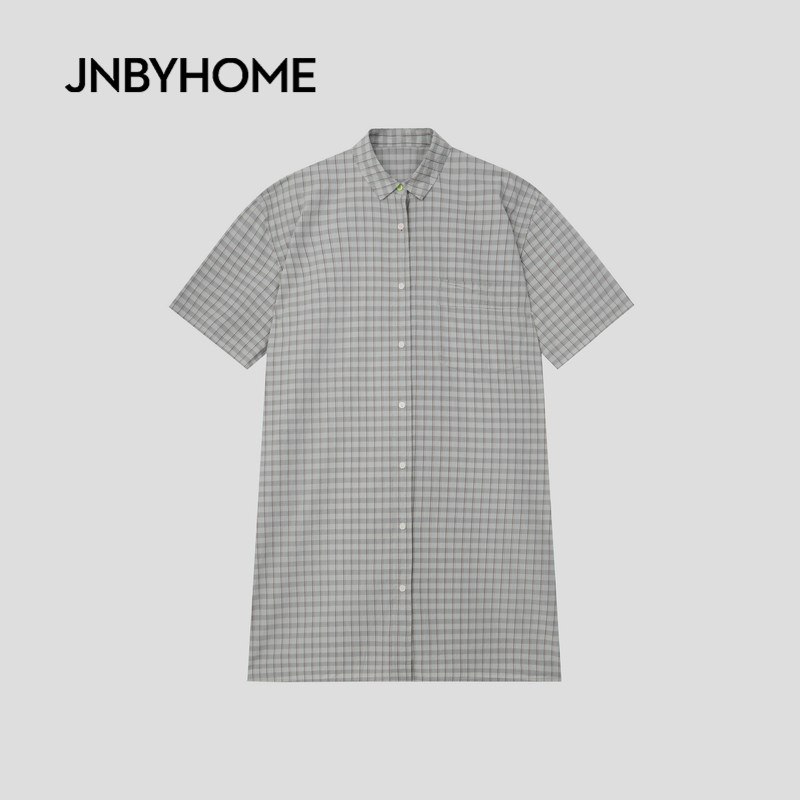 JNBYHOME江南布衣26新品春夏60S全棉家居睡裙格纹衬衫裙短袖睡衣