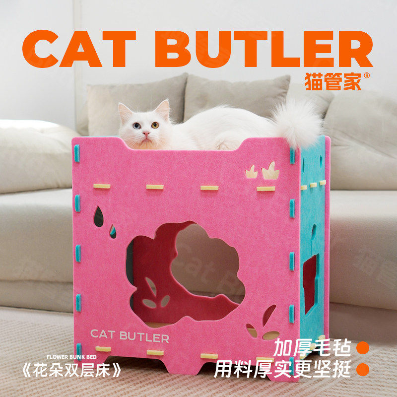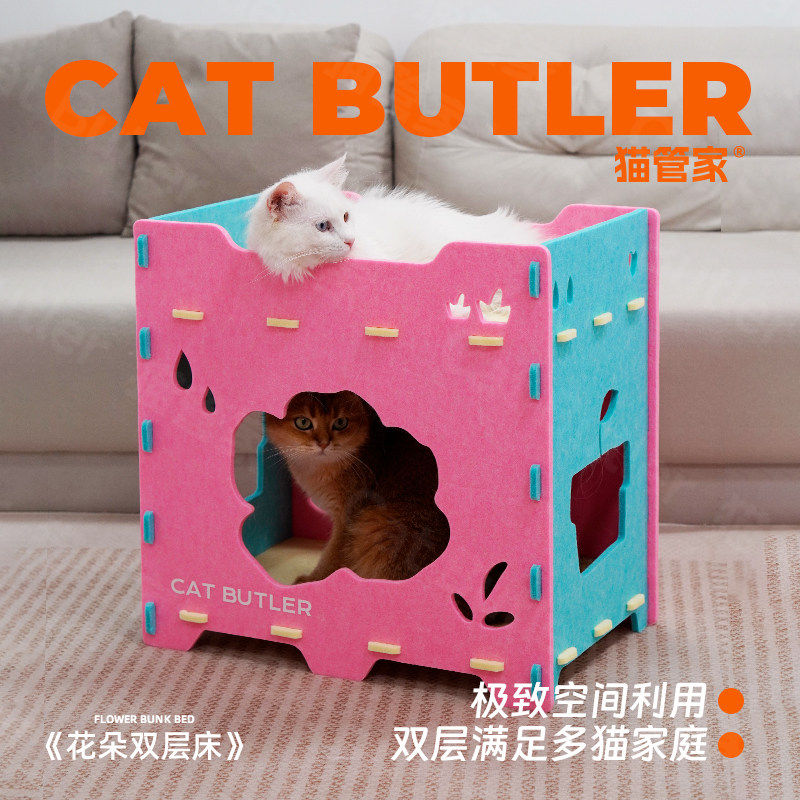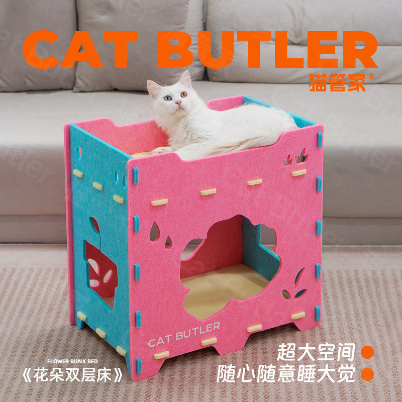 上下两层猫窝双层半封闭猫床猫抓板纸箱猫咪猫屋毛毡猫窝四季通用